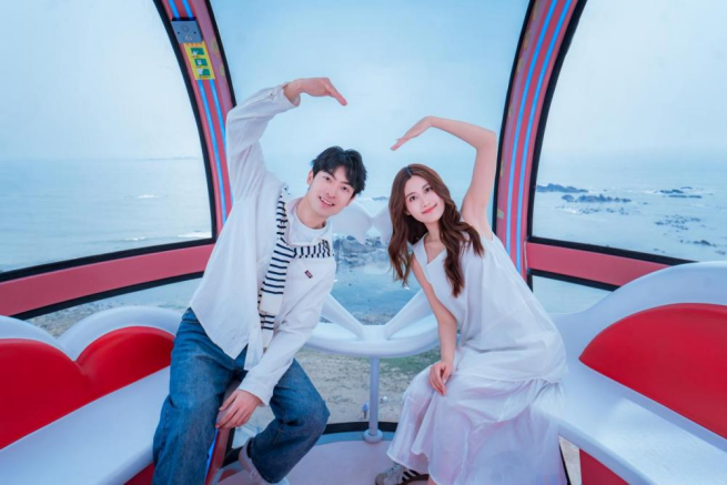 “极地之光·青岛海上摩天轮”总高66米,配备30个360°全景透明轿厢。特别的是,其旋转一圈的周期恰好是13分14秒,寓意着“一生一世”的浪漫承诺。登上摩天轮,新人们将看到青岛最美的风景。随着轿厢缓缓上升,青岛独特的“山、海、城”风光将在眼前展开。在13分14秒的浪漫运转周期中,游客可尽享三重绝美视野:近观礁石激浪、中览红瓦绿树、远眺崂山海天,体验海天相融的沉浸式视觉盛宴。