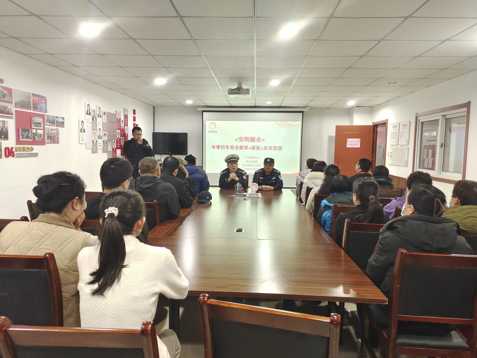派出所民警则围绕防范电信诈骗、禁放烟花爆竹、节假日防火防盗等内容展开讲解,同时结合元旦将至的特点,叮嘱社区居民“节日狂欢不忘安全底线”。