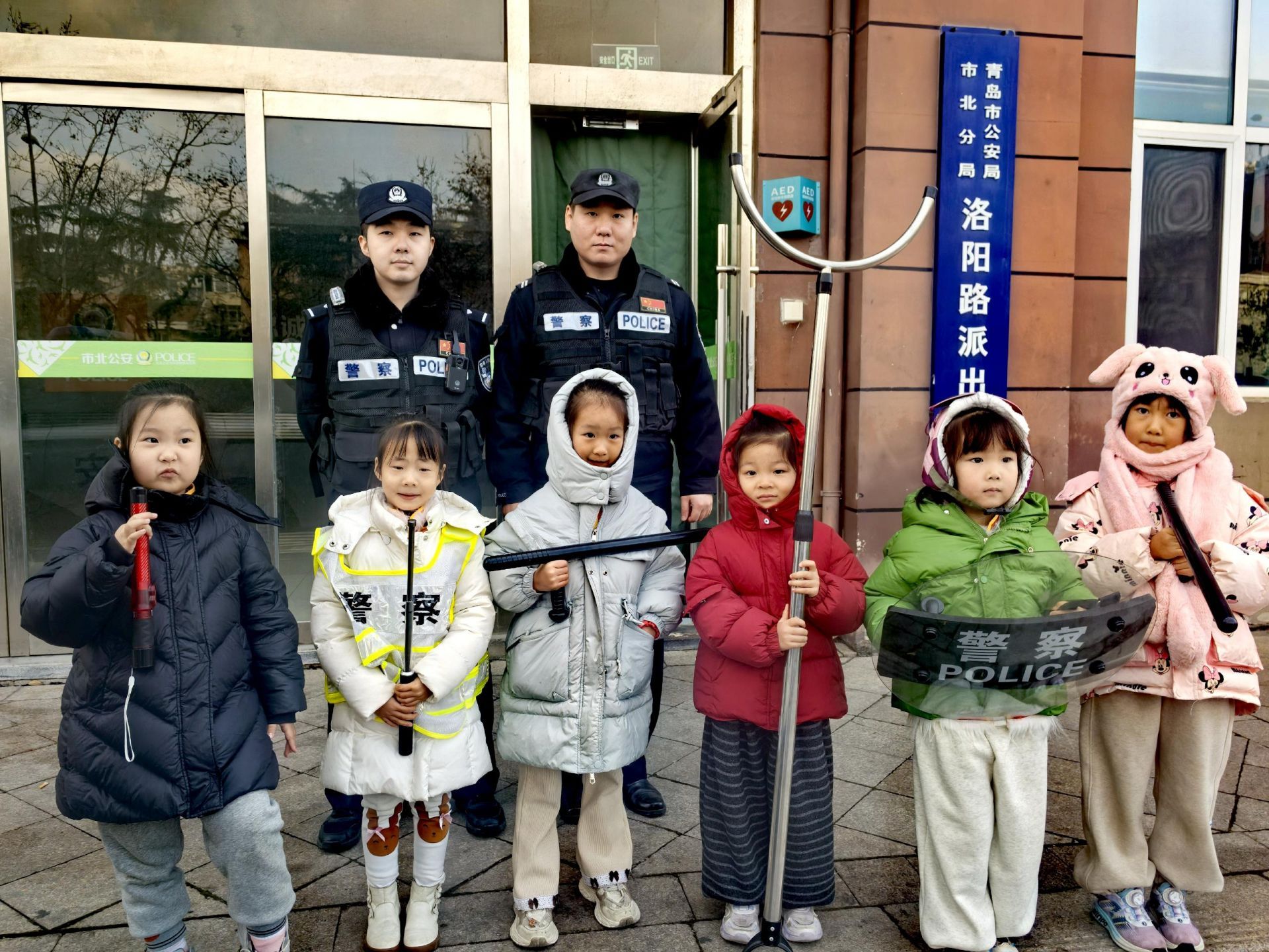 12月18日,青岛市公安局市北分局洛阳路派出所的大院里格外热闹,幼儿园的孩子们在老师的带领下走进警营,开启了一场充满好奇与探索的安全教育实践之旅,用“零距离”体验的方式,向守护校园安全的民警们表达感谢。