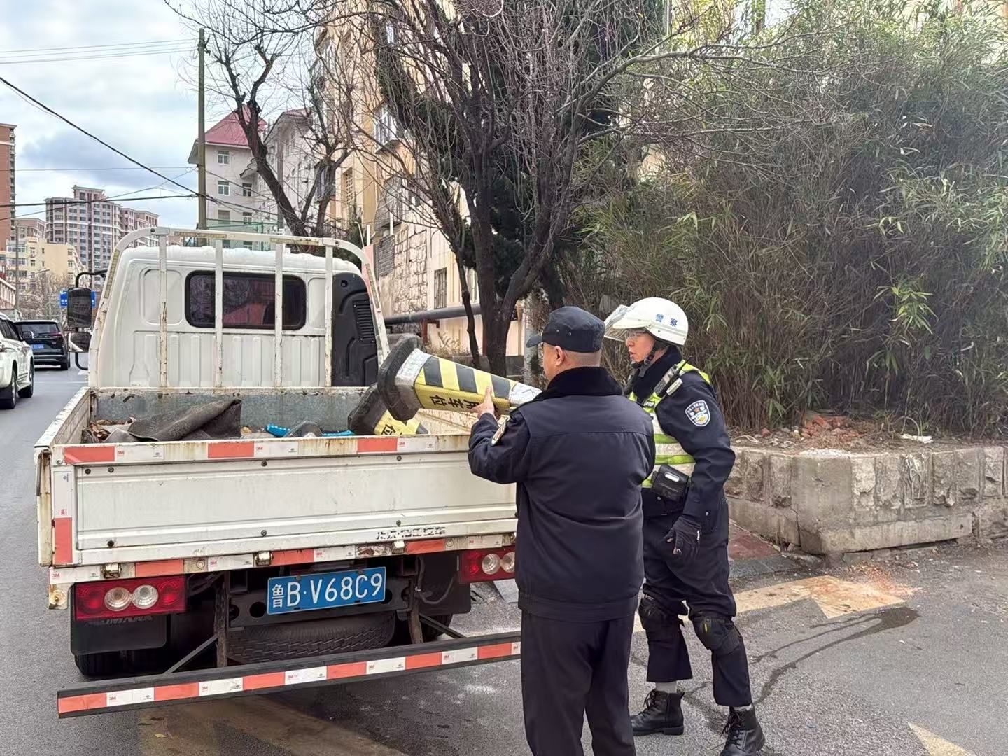 12月22日,青岛市公安局交通管理支队市北区大队一中队联合青岛市市北区延安路街道办事处,开展了清理地锁私占车位联合整治行动。