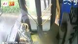 建筑工人一身灰土乘坐公交,怕弄脏座位刚要坐在车厢台阶上,...