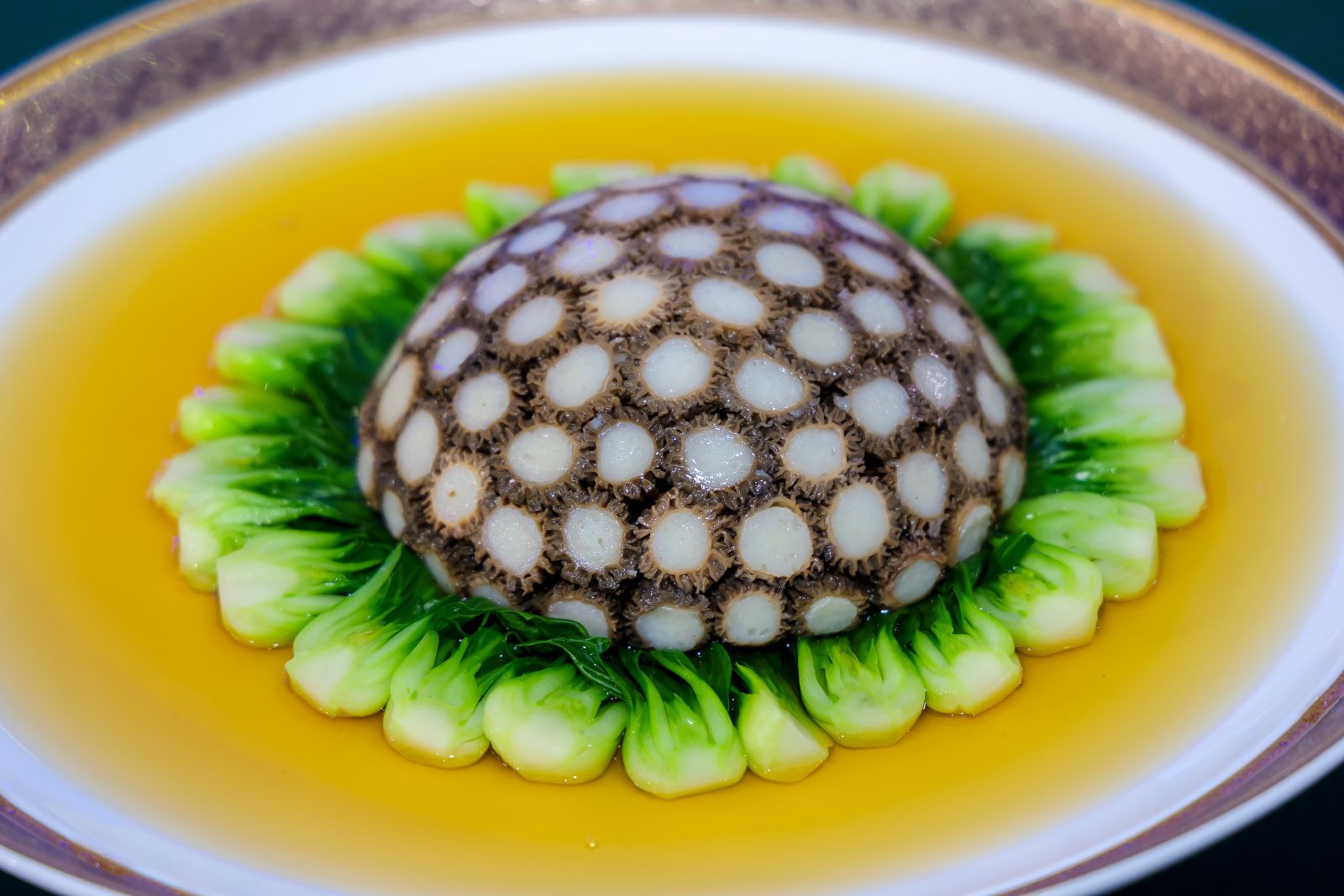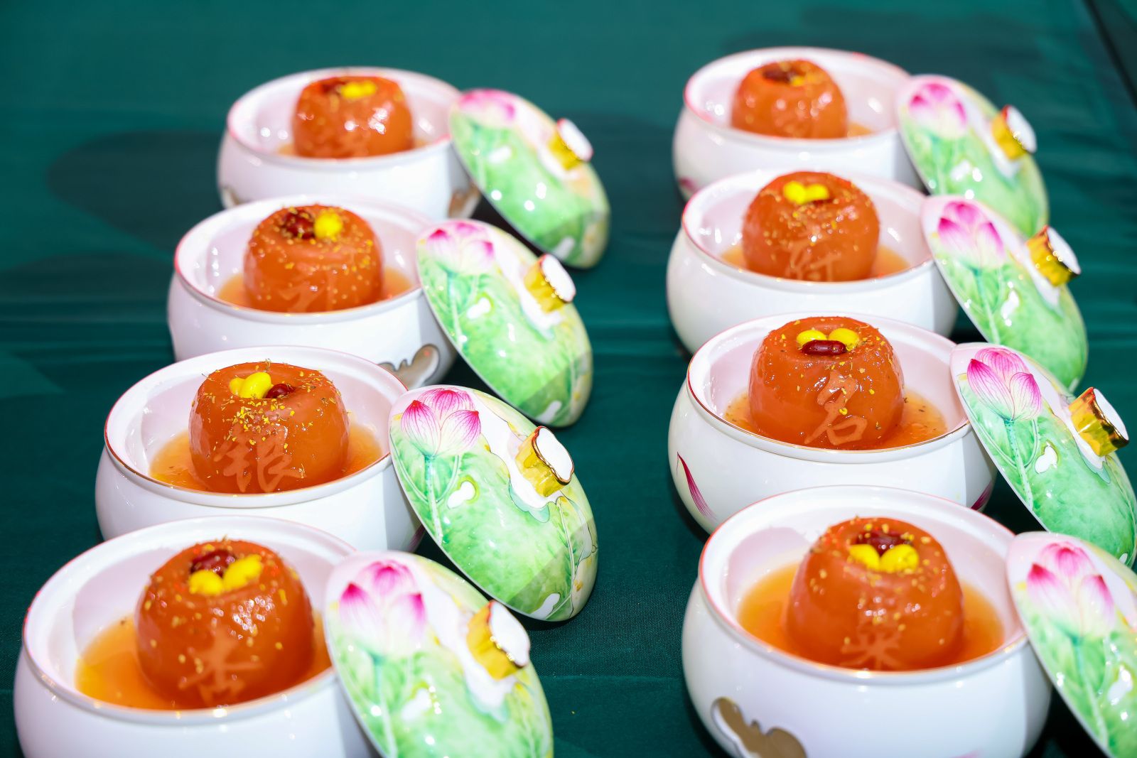当日赛事热度持续攀升,上午第二场预赛落幕后,八强战队即刻开启强强对垒,争夺决赛入场券。下午4时,八强赛正式打响,各队名厨紧扣地域特色,以鲁菜技法为魂、本土食材为骨,让每道菜品都成为地域文化的鲜活载体。青岛队主打“山海风味”,甄选“国宝级”食材胶州里岔黑猪与鲜活海捕大虾,匠心烹制焦溜汁㸆里岔黑猪排、富贵牡丹虾配金汤海胆汁,外焦里嫩的黑猪排香透齿间,牡丹造型虾球搭配鲜醇海胆汁,尽显青岛山海相拥的独特韵味;济南队深耕泉城雅韵,携孔府经典名菜诗礼银杏亮相,搭配荔枝罐汤肉丸,雪梨与银杏清甜解腻,肉丸鲜嫩多汁,让儒家食礼文化融入舌尖;淄博队深挖齐地醇厚底蕴,以散养黑猪肉、羊肚菌为原料,复刻翰林坛子肉、烹制沤底羊肚菌,坛子肉酥烂不腻、色泽红亮,羊肚菌鲜香浓郁,还原古齐饮食风味;潍坊队尽显鸢都食萃风采,巧用鸡腿、海螺、蹄筋等食材,创新打造鲁宴·九转玲珑山海肉、板桥八宝糊涂鸡,技法精巧、风味醇厚,赢得现场评审与观众一致好评。