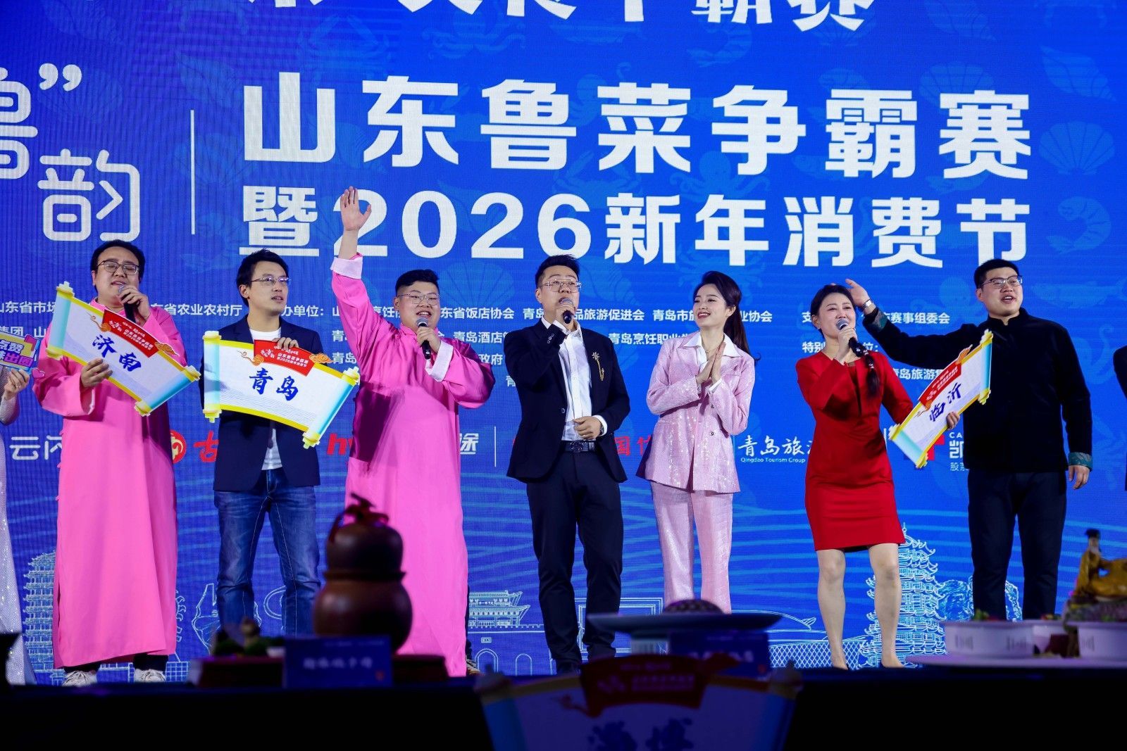 山海烹珍味,鲁韵贺新年。2025年12月27日,青岛国际会展中心内香气四溢、人声鼎沸,“齐风‘鲁’韵·山东鲁菜争霸赛暨2026新年消费节”第二日活动圆满落幕。经过首日激烈角逐晋级的八强厨师团队,在当日上演巅峰对决,最终济南、青岛、淄博、潍坊四支队伍脱颖而出锁定决赛席位,临沂、德州、烟台、济宁四队斩获“优秀菜品奖”,赛事与消费节双向赋能,为青岛冬日文旅消费市场注入强劲活力。
