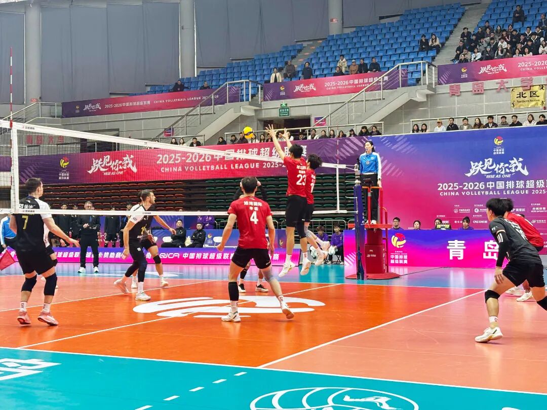 12月28日,2025-2026中国男子排球超级联赛常规赛A组第五轮继续展开争夺。经过五局激烈较量,青岛兴轮呦呦男排以2:3憾负保定沃隶男排。