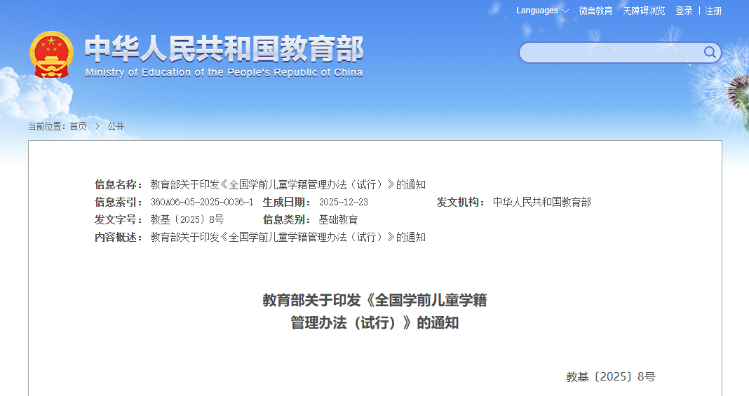 三是明确了学前儿童学籍建立与变动流程,强调凡在依法举办的幼儿园就读的学前儿童均须建立学籍,一人一号,小学学段接续使用,终身不变,学籍变动管理实行“一人一籍、籍随人走”制度。