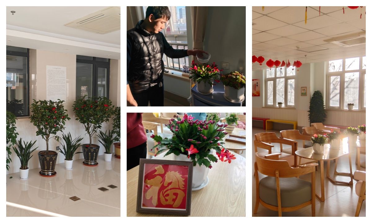 为打造整洁舒适、生机勃勃的生活环境,市社会福利院早早就开始装点布置,在供养对象日常活动的楼层与公共区域,摆放了山茶花、鹤望兰、棕竹、四季桂等各式绿植盆栽,处处洋溢着清新与活力。