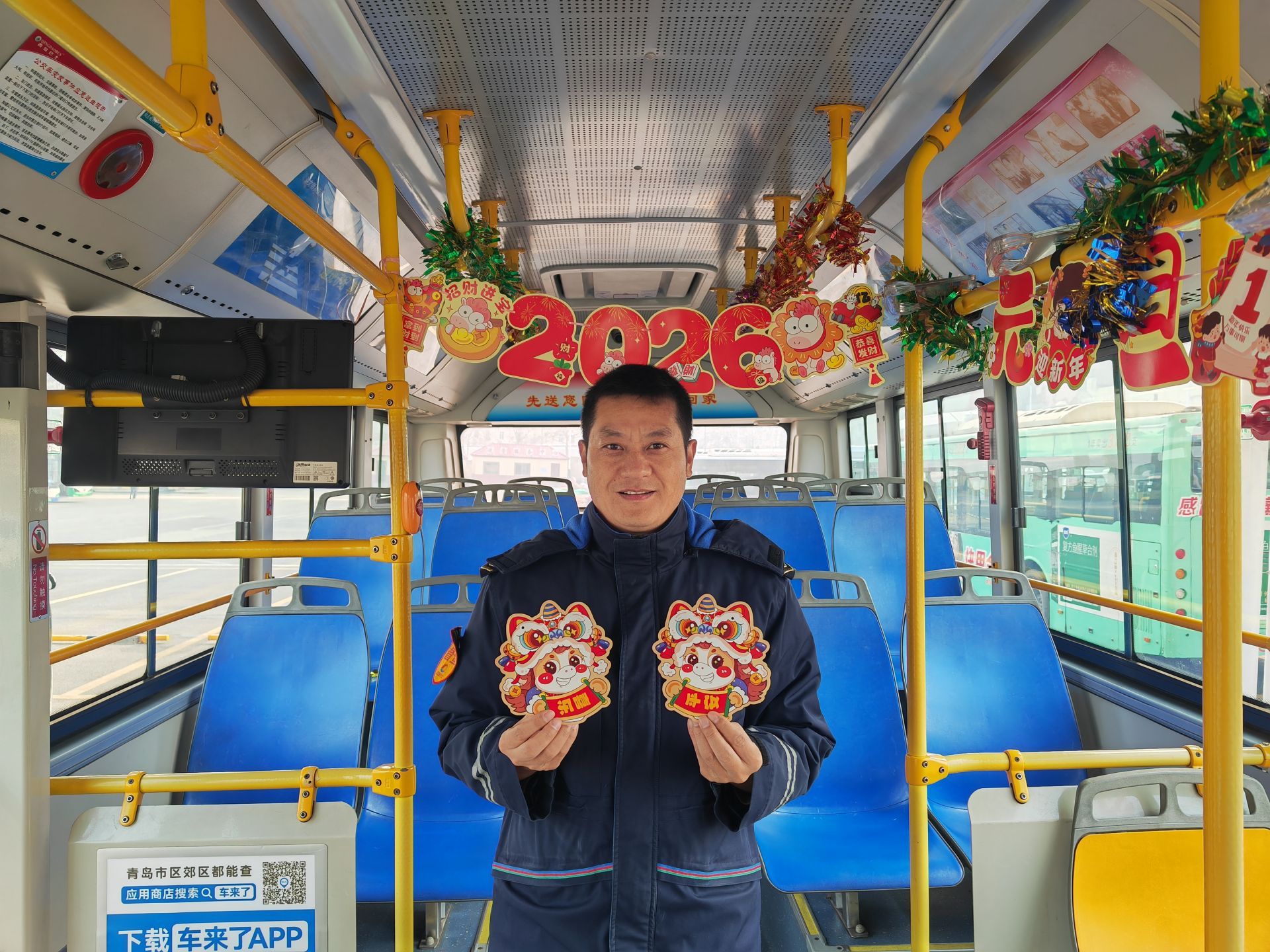 元旦临近,青岛街头节日氛围渐浓。在青岛城运控股公交集团隧道巴士公司215路公交车上,驾驶员吴相月精心装饰的“移动新年小屋”成为冬日里一道温暖的风景线。