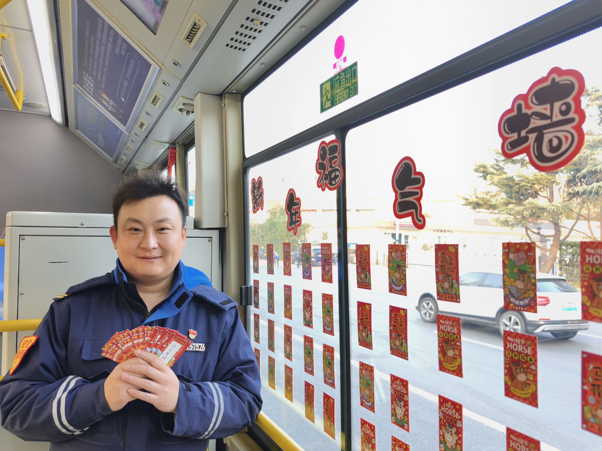 备受喜爱的“沾福气墙”今年再度登场,墙上贴满了一张张寓意美好的新年刮刮卡。每位上车的乘客都可随机选取一张,轻轻刮开,收获一份未知的惊喜——或许是一句真挚的祝福,或许是一个实用的暖手宝,又或是一只可爱的吉祥玩偶。这些看似小巧的心意,却让新年的首趟出行充满了仪式感与温度,生动诠释着青岛公交“诚载美好”的理念。