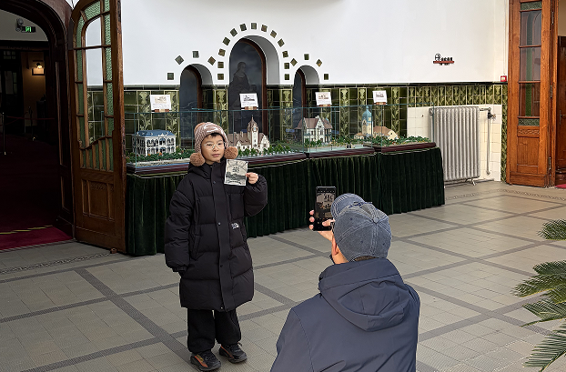 同日,“黄墙红瓦的百年过往——识图打卡”活动吸引了众多亲子家庭与年轻观众参与。活动方精心准备的打卡任务单上,收录了总督楼不同历史时期的老照片:有百年前门廊的原貌、昔日窗户映照的风景,还有旧时人们驻足的石阶。手持这些珍贵影像,参与者们化身为“历史侦探”,在展厅内仔细比对、寻找与照片对应的现代位置。