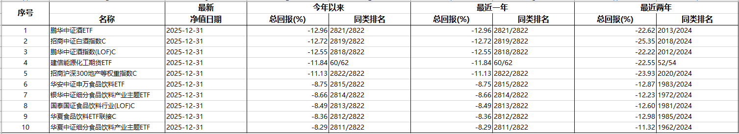 年度最差TOP1:鹏华中证酒ETF