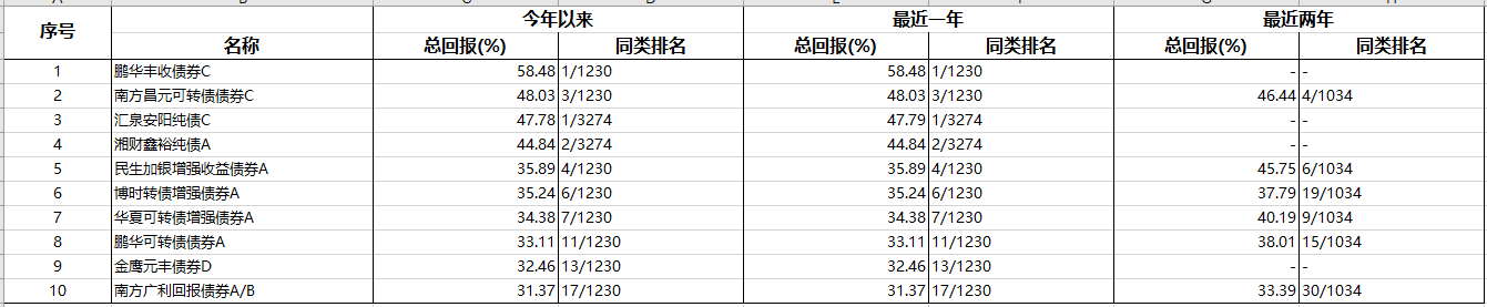 年度最佳TOP1:鹏华丰收债券C