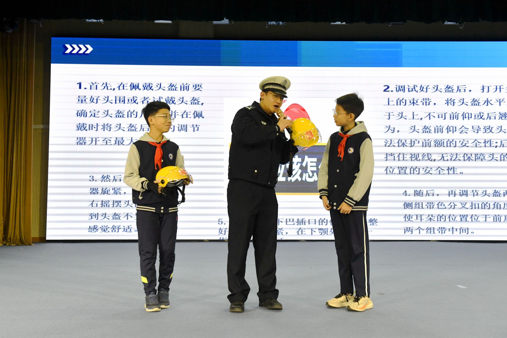 启动仪式上,宁夏路小学学生代表表演了交通安全主题节目《红绿灯下的好娃娃》,用童真童趣传递文明交通正能量。交管民警崔涛现场演示了头盔的正确佩戴方法及安全扣的规范系法,手把手教会学生和家长如何“戴好”头盔。活动还对践行“一盔一带”的优秀家长代表进行了表彰,发挥榜样力量带动家庭文明出行。