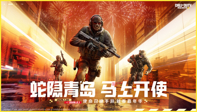 新春在即,年味渐浓。《使命召唤手游》携新春版本重磅福利,强势落地时尚之都青岛,在青岛崂山国际会展中心打造“使命新春嘉年华”。活动以头部游戏IP为核心纽带,深度融合青岛地域文化与文旅特色,将热血电竞与岛城滨海风情、时尚底蕴相融合,既为青岛市民与八方游客献上独具特色的新春游玩新选择,更以潮流文化为笔,为这座海滨城市的新春文旅市场注入全新活力。