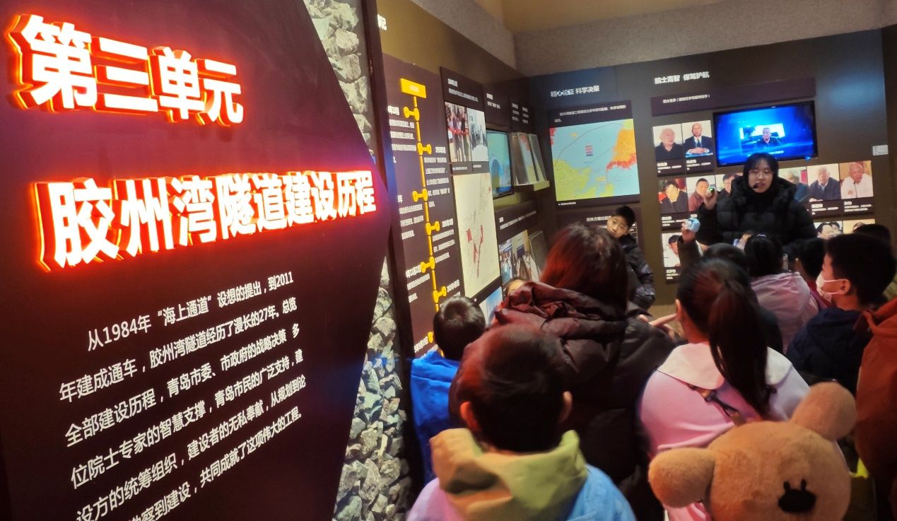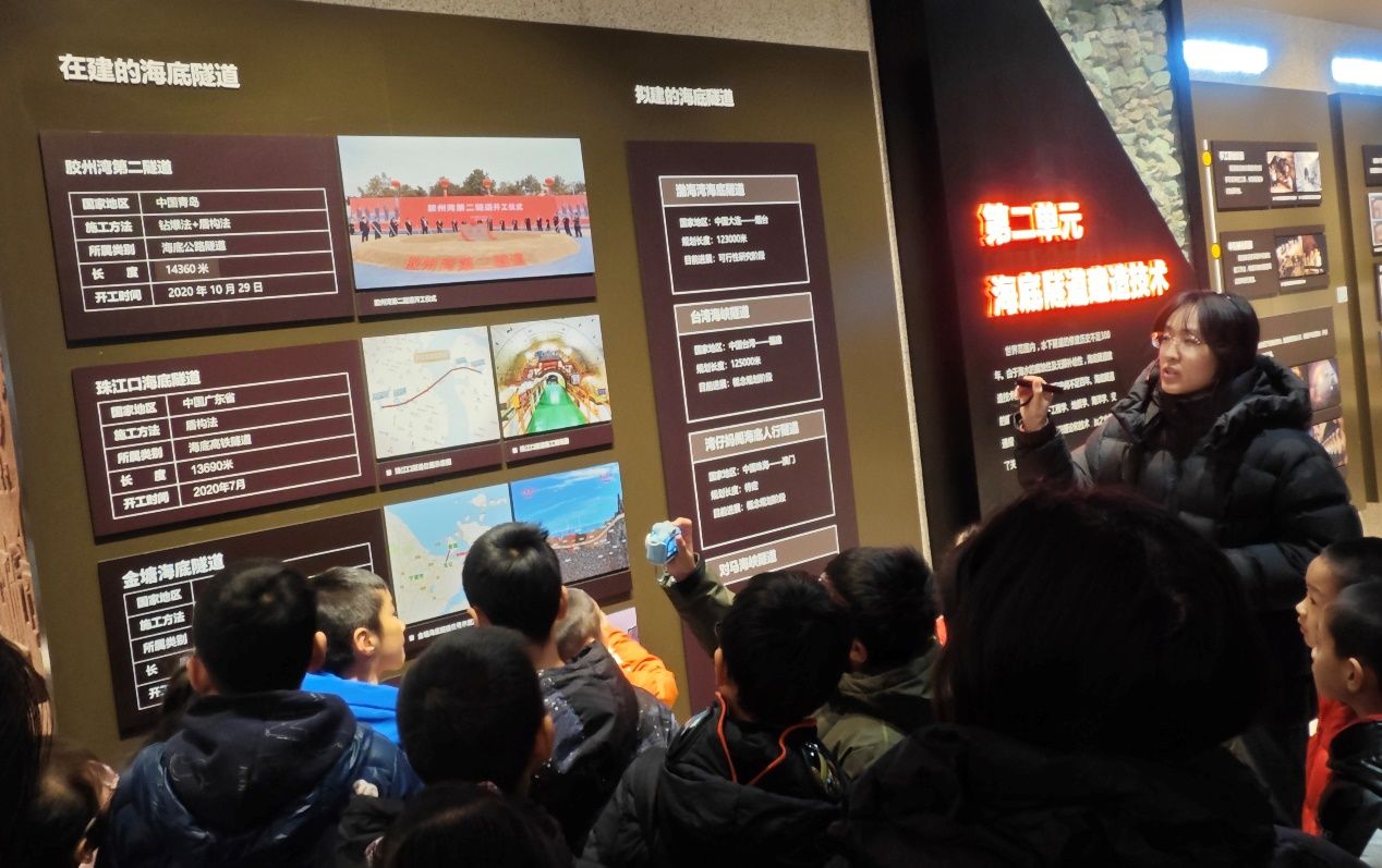 讲解员老师介绍了胶州湾隧道建设历程。