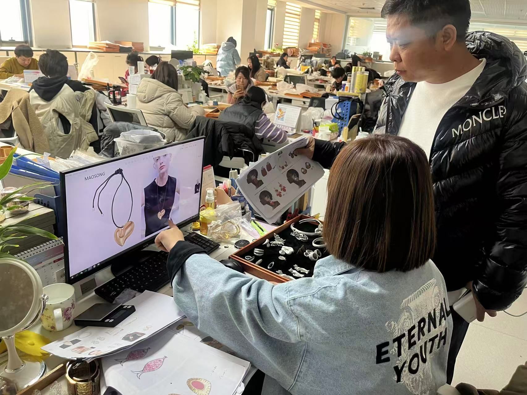 从全国首饰标准化技术委员会委员的专业视角,魏建华跟记者讲述了今年全面启动的“AI赋能计划”,“例如,我们的设计中心开始应用AI进行流行趋势预测和初稿生成,效率提升超过50%”, 魏建华表示,这将让数据贯穿实现从一颗锌合金原料到戴在消费者身上饰品的全过程,真正实现了决策从“经验驱动”到“数据驱动”的转变。