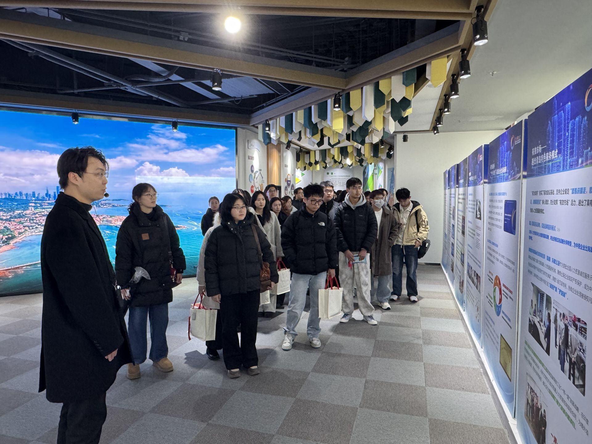 启动仪式后,70余名青岛籍学子开启专属研修之旅,走进国家级青岛人力资源服务产业园,近距离感受招才引智云平台的便捷高效,实地“打卡”求职匹配、创业孵化、技能提升等“一站式”服务环节,不少学子当场扫码注册,主动咨询实习岗位信息。赛轮集团、蓝海人力等重点企业同步开启“寒假实习绿色通道”,聚焦人工智能、港航服务、人力资源等核心产业需求,集中发布优质实习见习岗位,实现“当场对接、节后上岗”,让“返乡即就业、归巢即成长”的美好愿景落地生根。