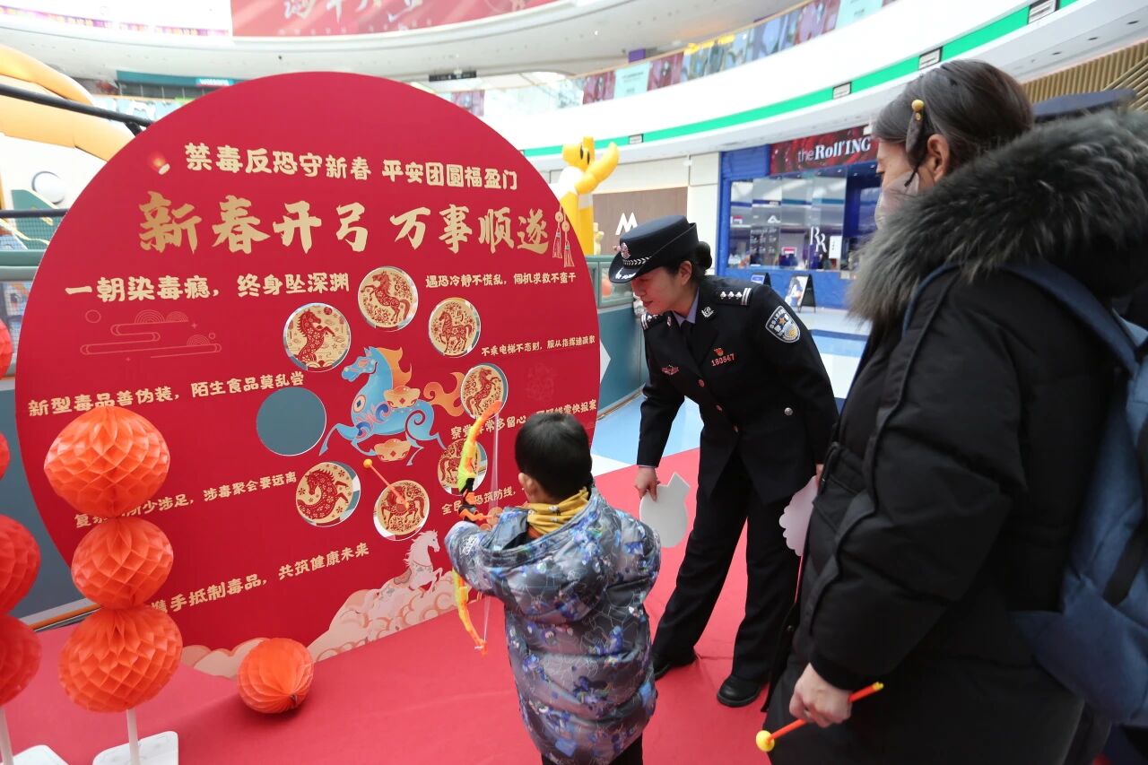 记者看到,民警辅警现场讲解毒品种类与危害、反恐防范基本常识,引导群众认清涉毒涉恐违法犯罪的严重后果,树立“防毒拒毒、反恐防恐,人人有责”的意识。群众拉弓射箭、寄托新春期许的过程,亦是沉浸式学习禁毒反恐知识的过程,在欢声笑语中筑牢思想防线,以平安姿态迎接新春佳节。