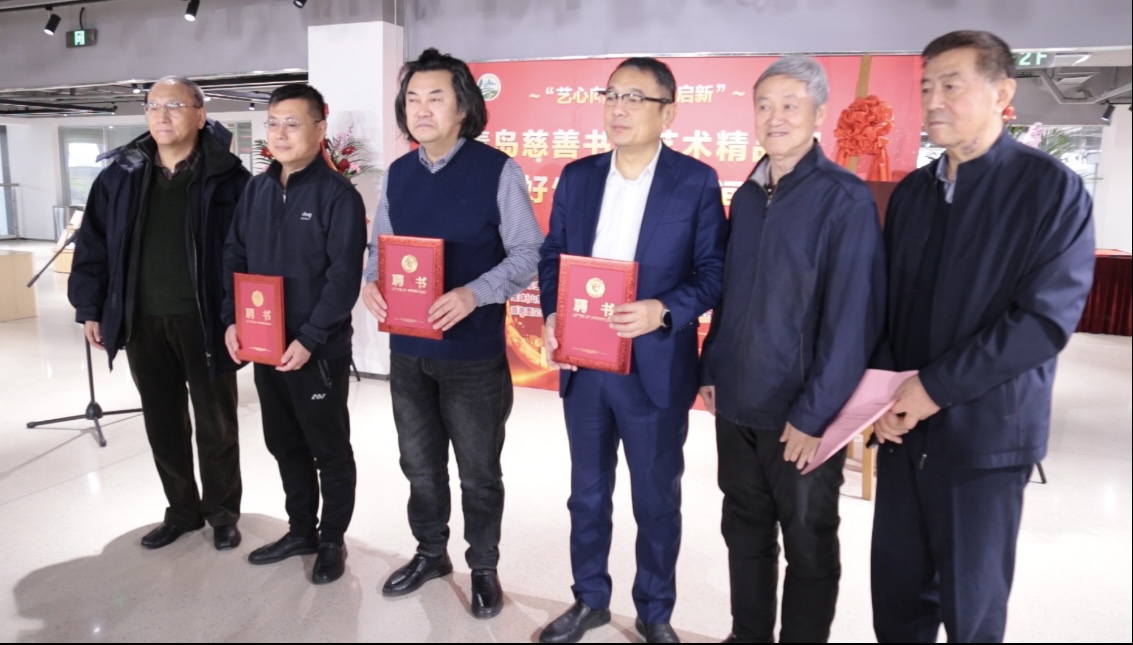 在美好喜庆的氛围中,2026年青岛市慈善书画院新增特聘的六位艺术家颁发聘书仪式举行,青岛市美术家协会副主席单继宏、青岛市书法家协会副主席董坤、青岛市市北区书法家协会副主席张维柱作为艺术家代表接受聘书。