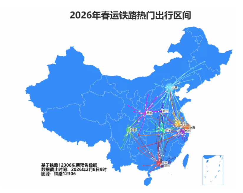 2月8日全国铁路预计发送旅客1325万人次,计划加开旅客列车1688列,其中在京广、京沪、京哈等主要高铁通道增开夜间高铁列车,对部分非热门线路车票实行最低2折票价优惠,为旅客出行提供更多选择。2月7日,全国铁路发送旅客1381.4万人次,运输安全平稳有序。