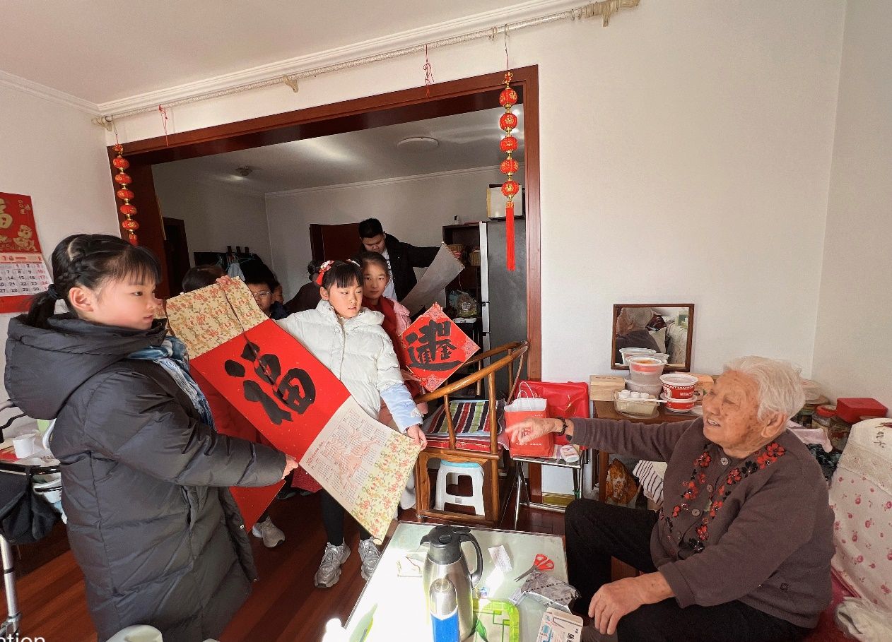 社区活动现场,队员们提笔写福,向社区老人递上福字与真挚问候,用暖心举动为寒冬注入温情,让邻里情谊在年味中升温。