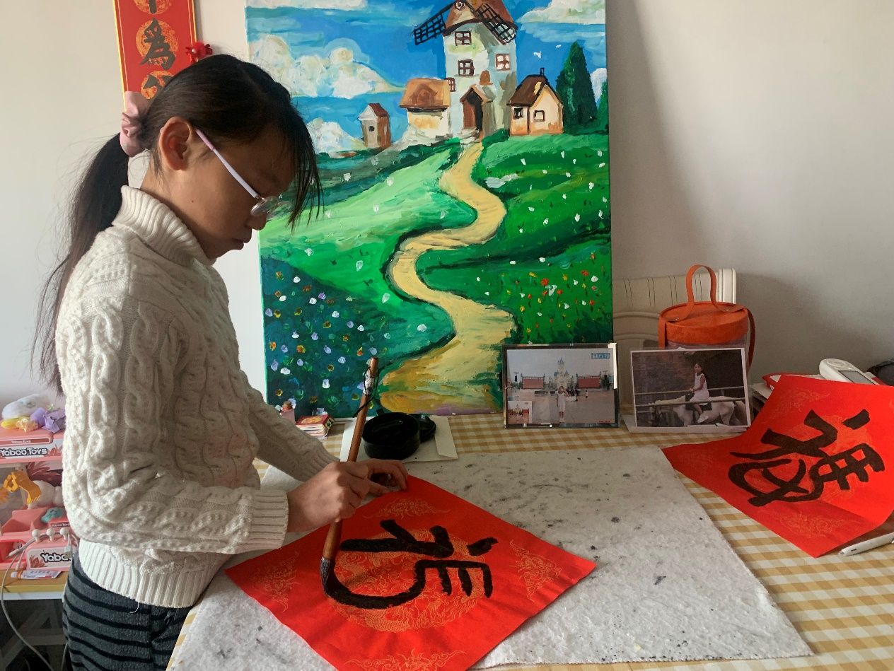 队员们解锁新春“仪式感”,握起毛笔挥毫写福字、练毛笔字、剪刻窗花、精心张贴,在墨香与红纸间感受传统文化魅力,让居家时光满溢新春雅韵。