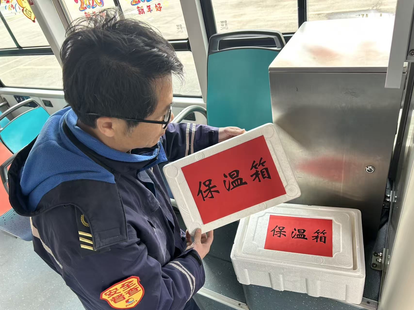 李刚敏锐地观察到乘客们的实际困境:拥挤的车厢内,老年人或手提重物的乘客步履维艰,保持平衡与安全成为难题;采购的海鲜等生鲜年货,在颠簸的公交车上难以妥善存放,既可能造成物品损坏、汁水外漏影响环境,也给乘客带来不便与担忧。为此,李刚特意增设了多项贴心设施:干净的保温箱,专为需要保鲜的海鲜等年货提供临时放置区;结实的便民塑料袋,方便乘客随时分装物品,化解大包小包的不方便。“往年总看到乘客拎着海鲜挤公交,既不方便又不安全。”李刚的话语朴实无华,“今年提前准备了这些设备,就是想让大家轻轻松松办年货。”这些看似微小的举措,却精准击中了乘客出行痛点的核心,将普通的公交车厢升级为一个功能性的“暖心年货驿站”。保温箱和塑料袋不仅是物品,更是无声的关怀与承诺,它告诉每一位上车的乘客:你的需求,被看见;你的不便,被关照。