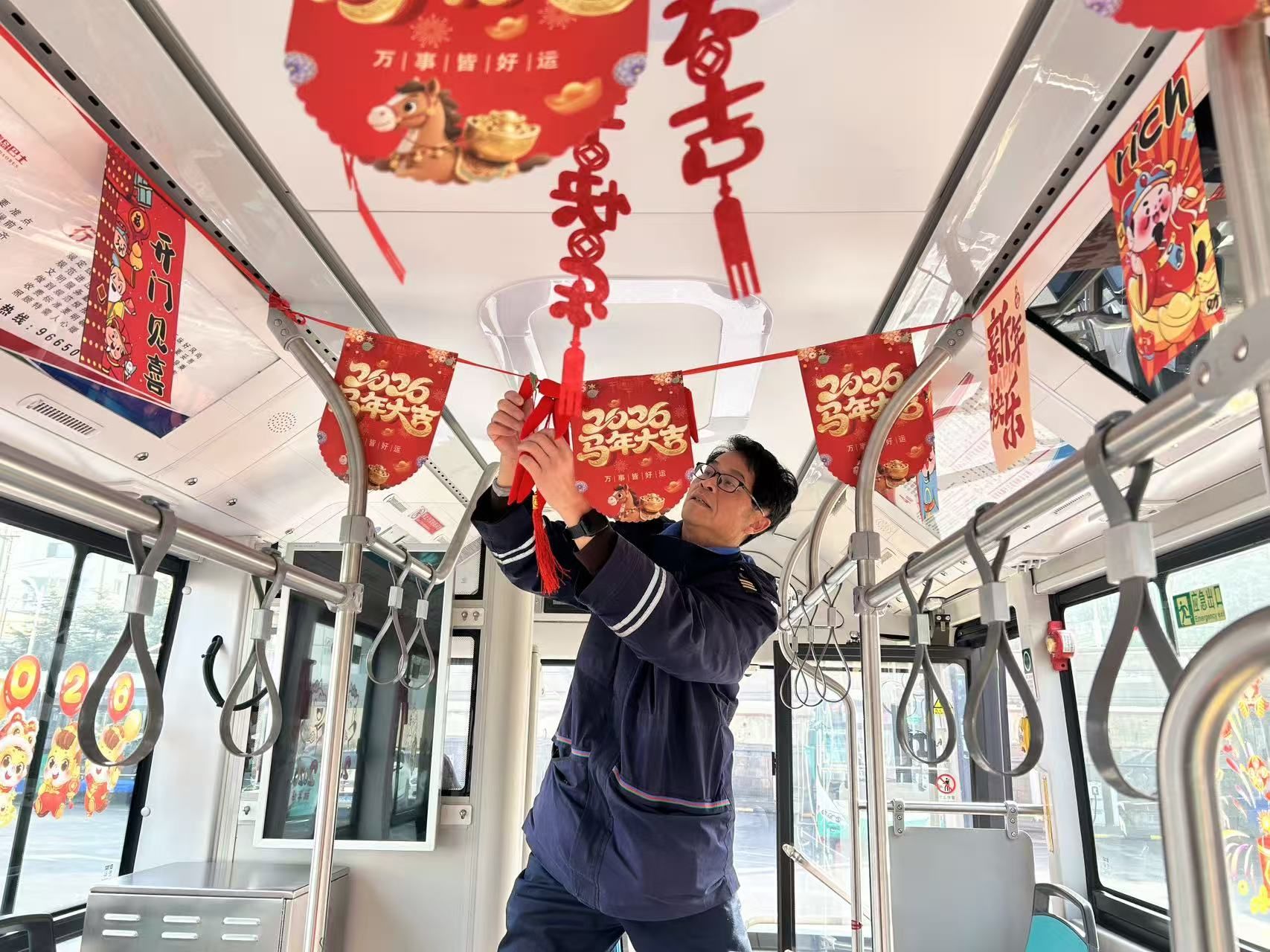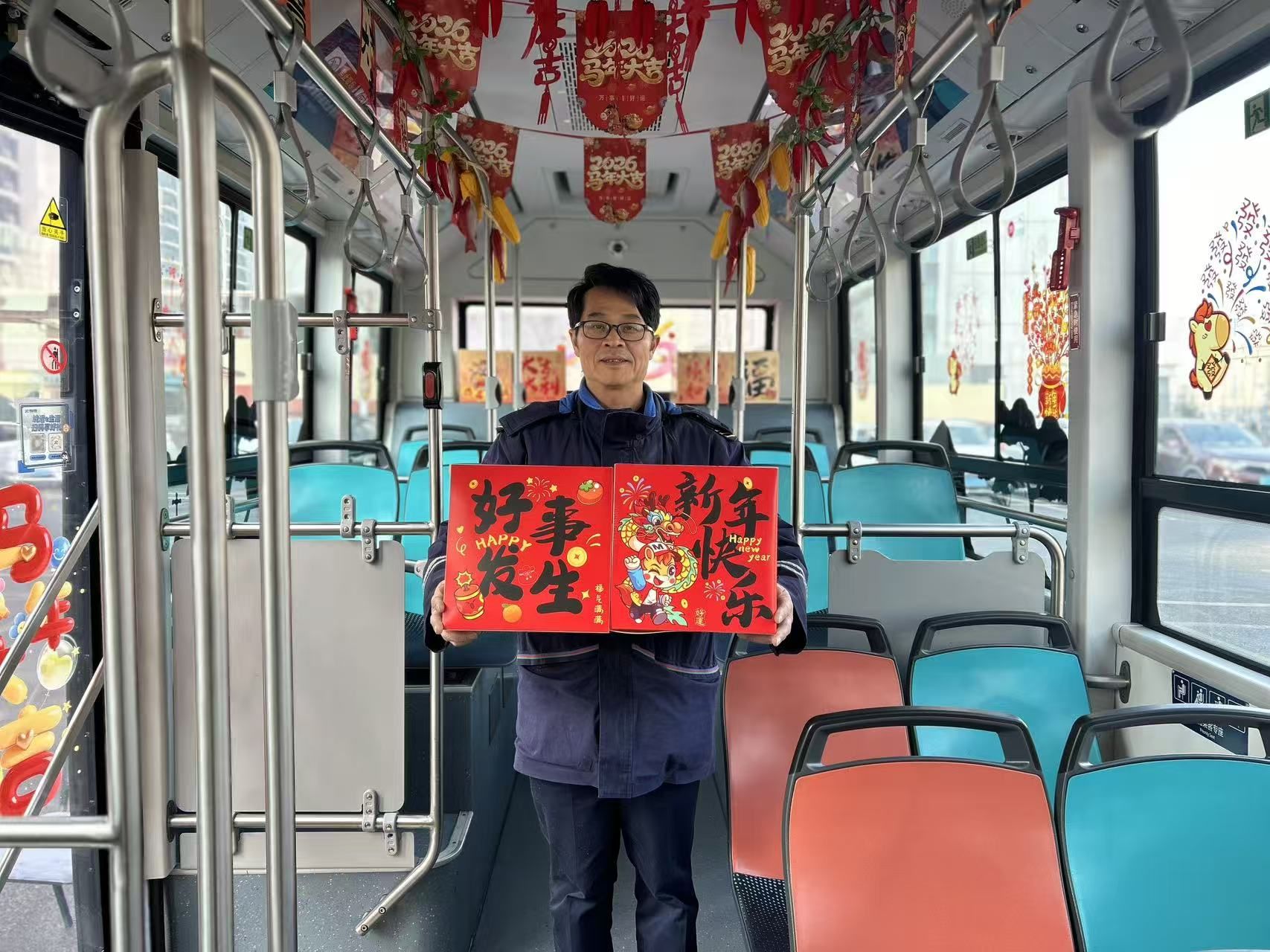 这辆装满年味的公交车,穿行在城市街头。车窗上的福字映着乘客们的笑脸,保温箱里放着对团圆的期待。李刚师傅转动方向盘,也转动着这份属于平凡生活的温暖。当车门一次次开合时,上下的不只是乘客,还有这座城市最质朴的温情。年,就这样在车轮转动中越来越近;暖,就这样在车厢里静静流淌。
