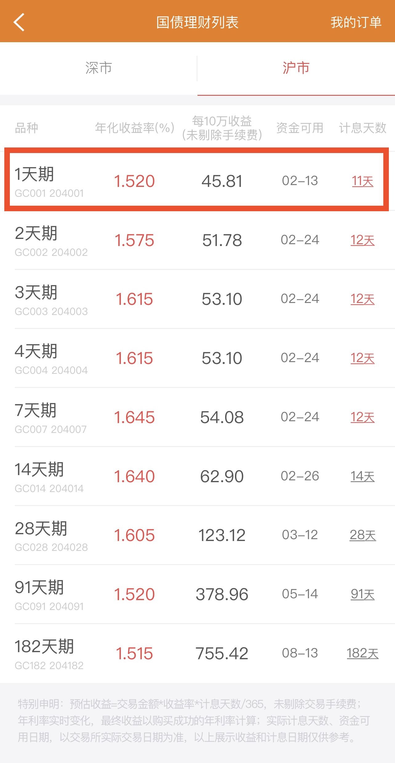 国债逆回购理财列表