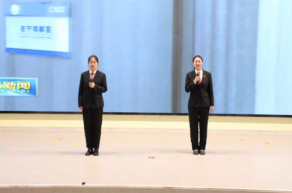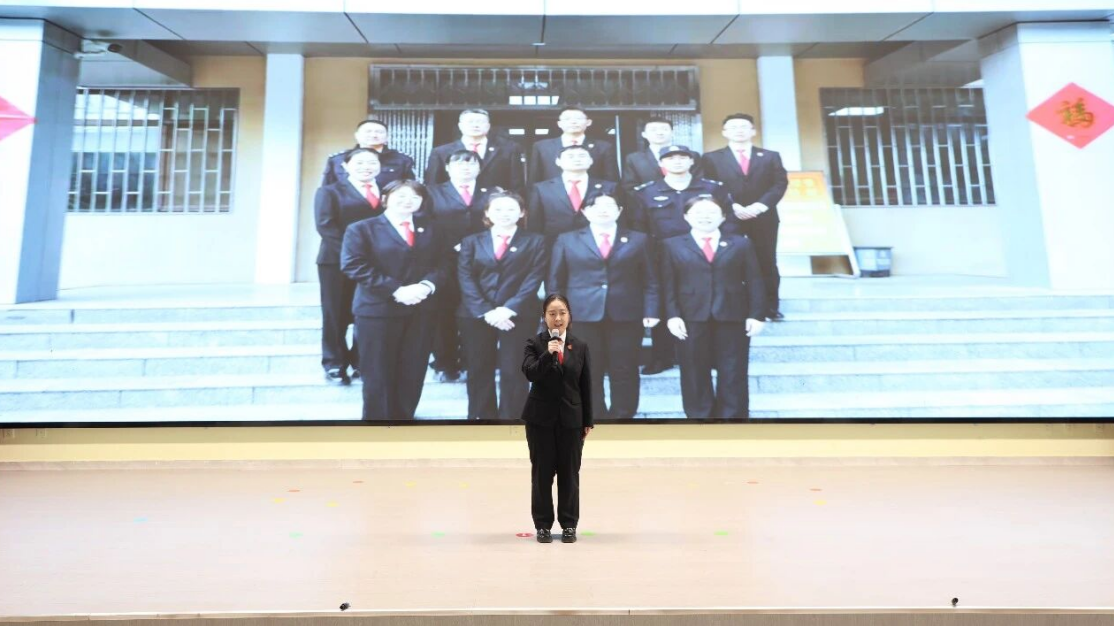 第一篇章结束后,胶州法院干警倾情演唱《法徽下的无悔之梦》,歌声真挚激昂,生动诠释了法院干警对法治事业的赤诚热爱与对初心使命的执着坚守,传递出新时代法院干警的责任与情怀。