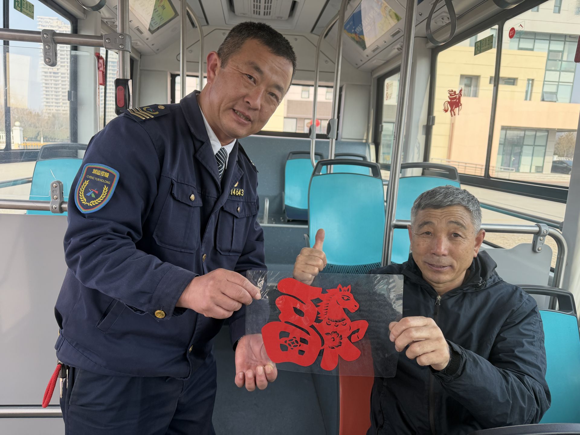 新春渐近,年味渐浓,赶大集、赏民俗成为市民迎接新春的传统仪式。为传承中华优秀传统文化,让公共交通承载更多烟火气与文化味,青岛城运控股集团城阳巴士第十一分公司巧思创新,将非遗剪纸艺术搬进927路车厢,精心打造“赏马”主题巴士,让乘客在便捷出行途中,既能欣赏精美的马年剪纸,又能直达周边大集,实现“乘‘赏马’车厢,赶上马大集,享‘红心’服务”的一站式暖心体验,让十米车厢成为传递年味、彰显文明的“流动文化驿站”。