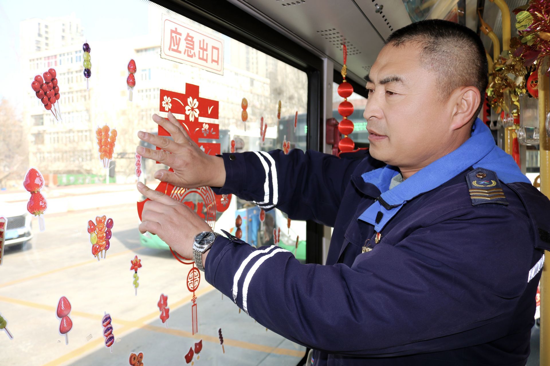 如今,接续这份使命的是驾驶员续宗政。今年是他连续第三年亲手打造“糖球号”主题车厢。 从构思设计、挑选红灯笼与仿真糖球挂件,到张贴民俗知识贴画,续宗政全部利用业余时间亲力亲为。“以前是保障大家‘去得了’,现在是要让大家‘体验好’。”