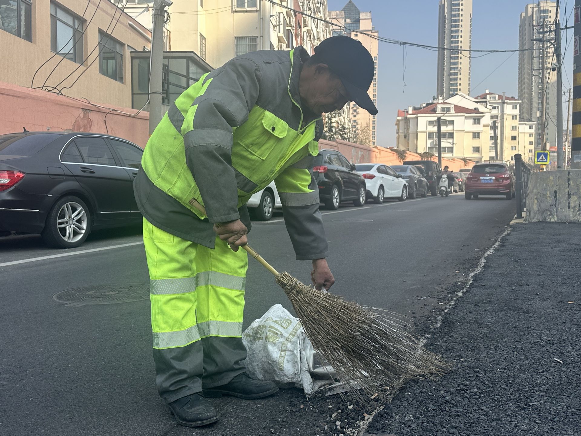 王树学今年60岁。由于儿子在青岛定居,他和老伴便在2020年从老家跟了过来——老伴负责在家照看小孙子,他则揽下了这份环卫工作,每天凌晨五点半上街,清扫永吉路周边路段。“儿子儿媳都劝我别干了,说享享清福。”王树学掸了掸工作服上的尘土,在椅子上坐下来,“我说闲不住,出来动动,还能给家里添补点。”