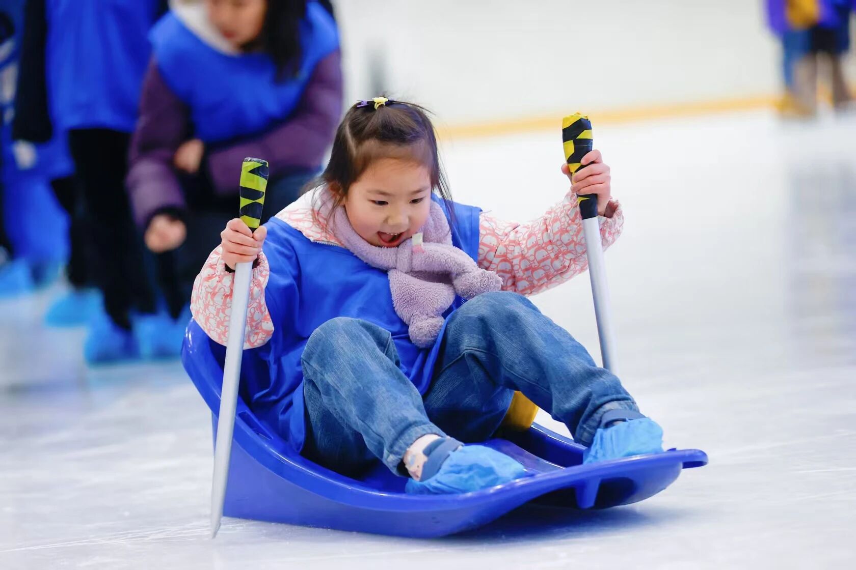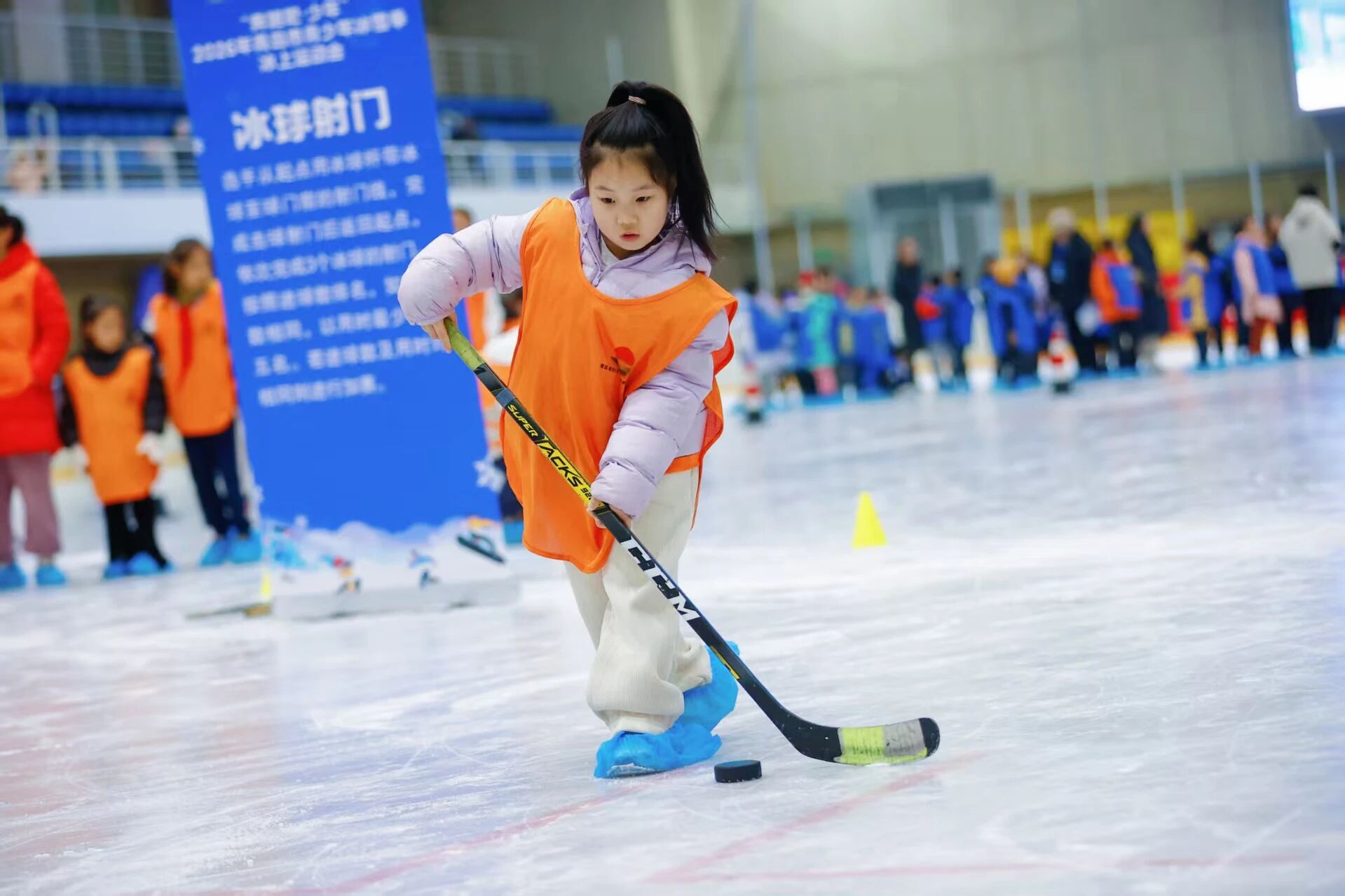 活动中,超过400名青少年参与了旱地冰壶、冰球射门、雪橇竞速和速度过桩四个项目。活动现场既有初次体验者的好奇与兴奋,也有专注投入者的策略与技巧。