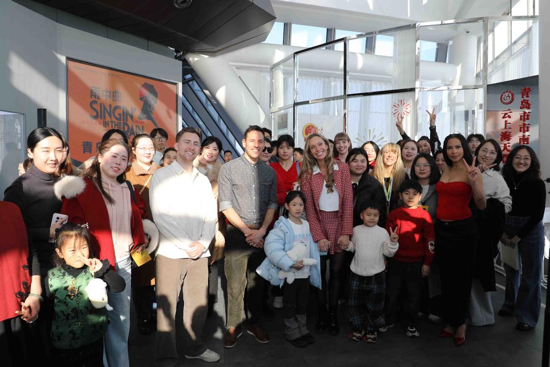 作为一部讲述好莱坞从默片向有声电影转型时期故事的经典之作,《雨中曲》以其幽默诙谐的风格著称。在交流环节,主创团队不仅分享了此次中国巡演的幕后趣事,还表达了对青岛这座城市的喜爱。当被问及对青岛的印象时,演员们表示,青岛的海滨风光让他们倍感亲切,而能站在城市最高点俯瞰全貌更是令人震撼。扮演科斯莫·布朗的马修·麦迪逊表示:“这是我们第一次造访青岛,青岛是一座特别美丽的城市。刚才乘电梯上到云上海天,眼前的美景感觉特别可爱。虽然没有太多时间参观,但是我们肯定会爱上这座城市。”