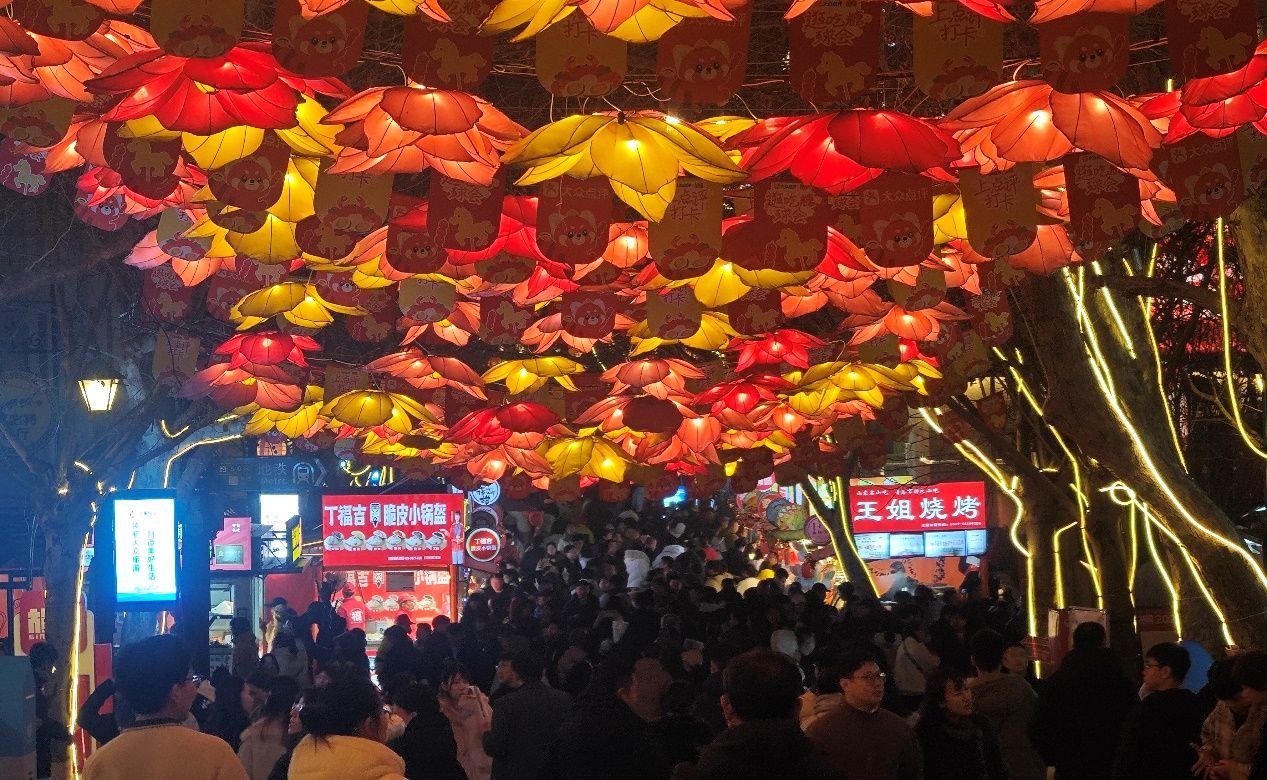 春节期间,入夜后的老城区灯火璀璨、热闹非凡,吸引各地游客纷至沓来。