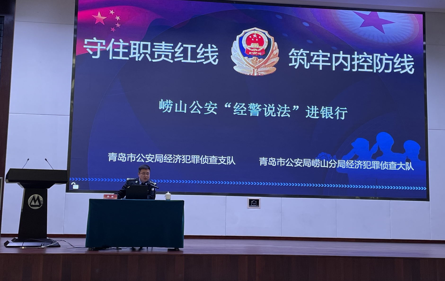 2月25日,青岛市公安局崂山分局经侦大队“经警说法”团队走进招商银行青岛分行,面向百余名个贷客户经理开展专题普法教育暨防范非法集资宣传活动。