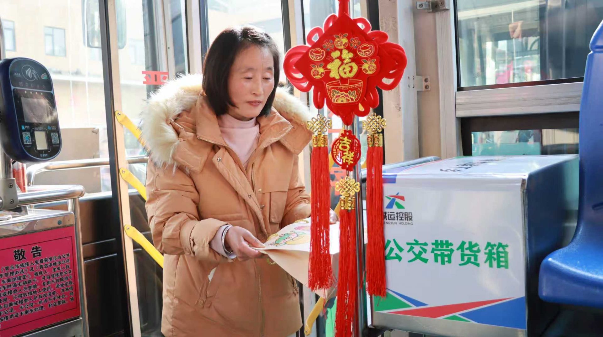 “大姐,您把收货站点和电话写好,我下一趟返程大概下午4点10分送到,让家人到公交站等就行。”春节假期,在青岛胶州张家屯小学公交站,3502路公交驾驶员刘正刚提醒着上车“发件”的居民——这件货物将“坐”着公交车,发往40公里外的胶州市区。