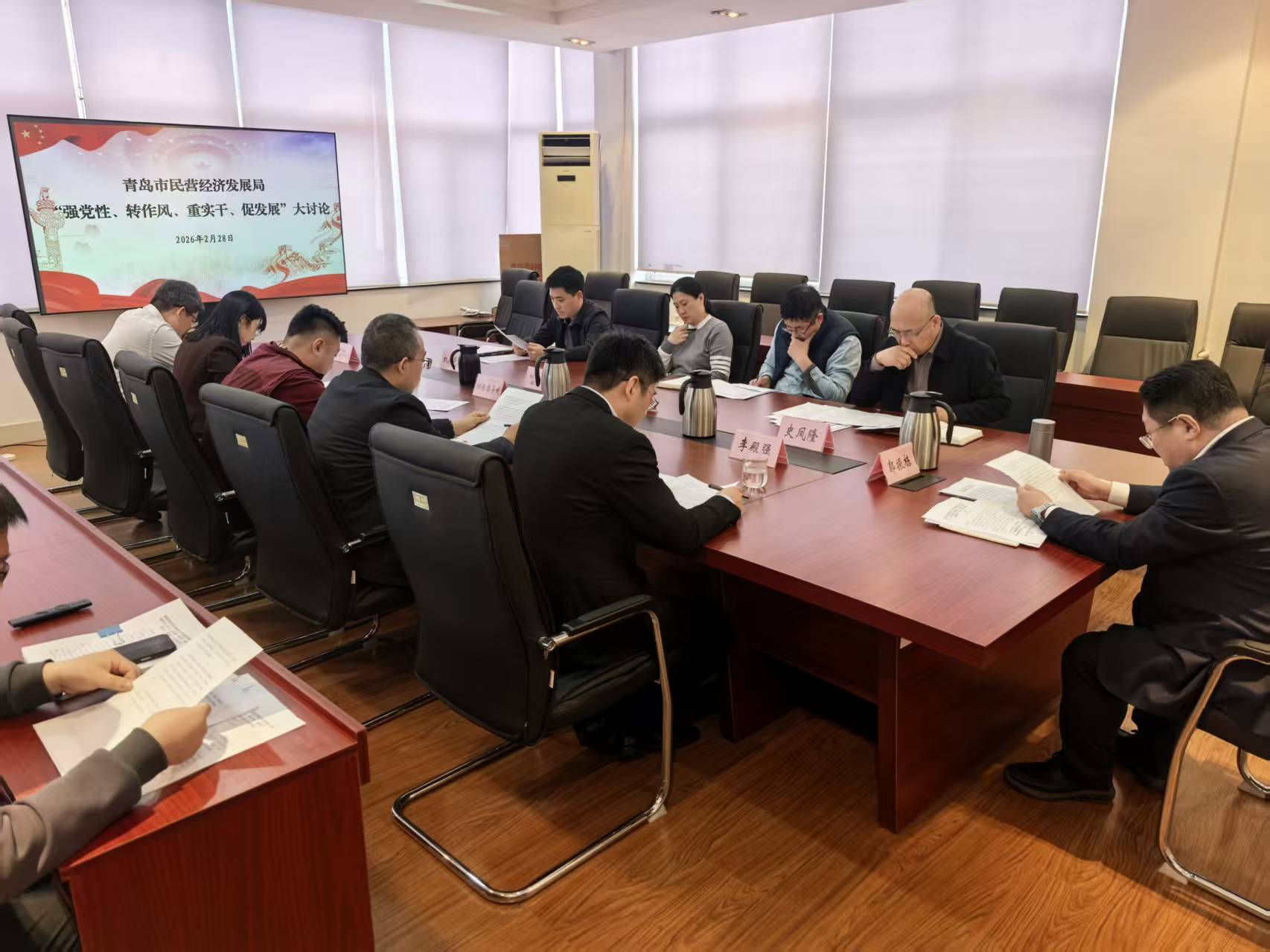 2月28日,青岛市民营经济局召开2月份党组理论学习中心组学习(扩大)会议暨“强党性、转作风、重实干、促发展”大讨论。