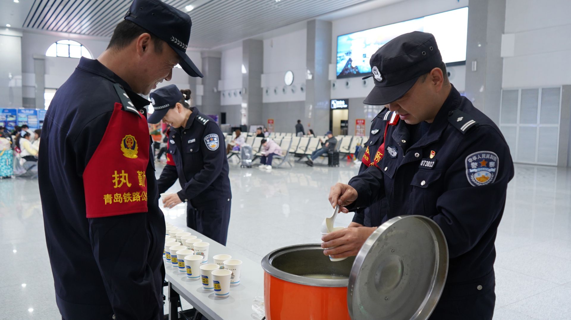 在列车停靠间隙,民辅警还将暖心汤圆送到值乘途径城阳站的乘警手中,一句句关怀话语,为一线战友驱散疲惫。乘警们表示,将坚守岗位、履职尽责,全力保障列车运行安全与旅客生命财产安全。