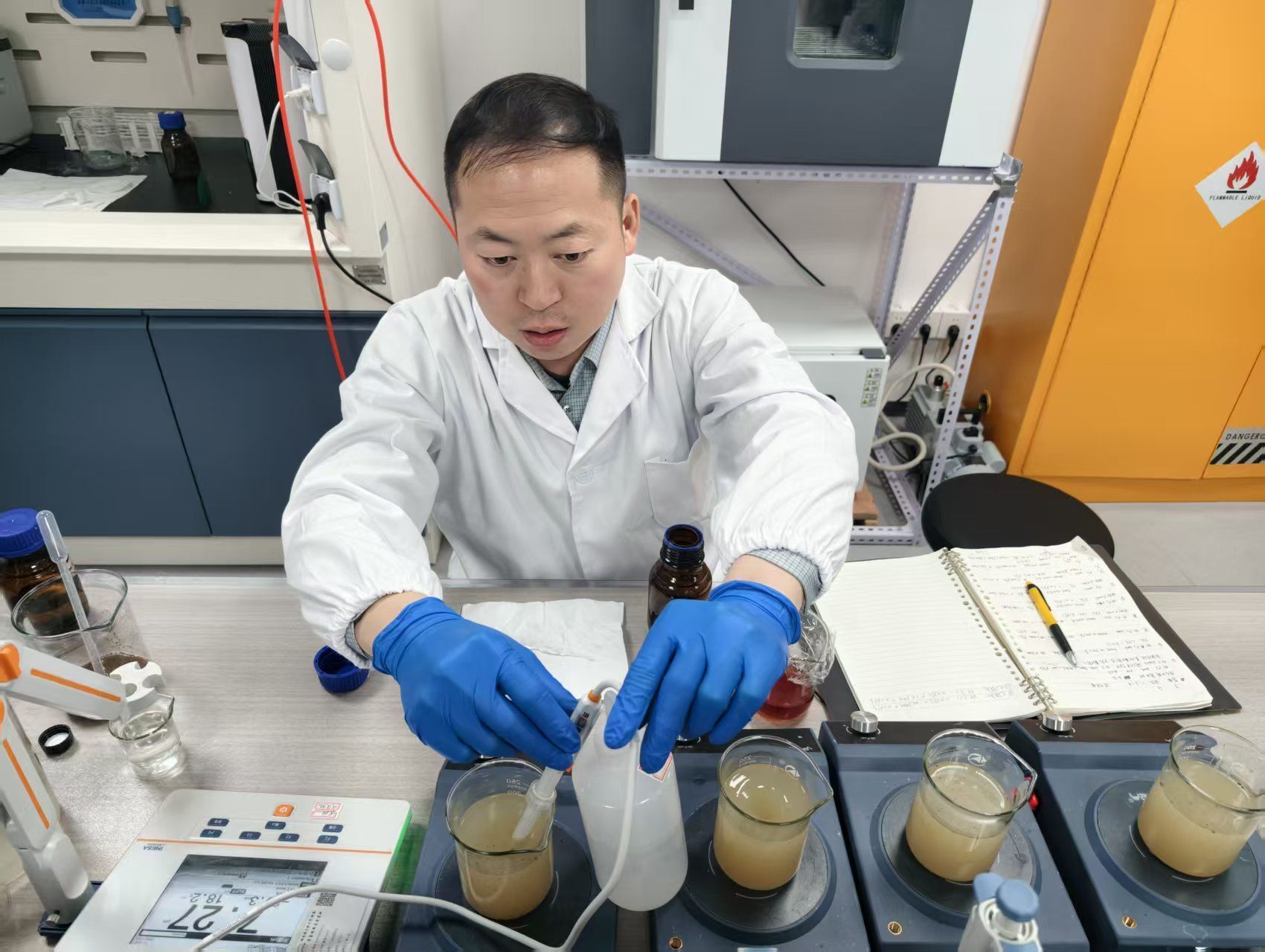 唐小斌在做试验。