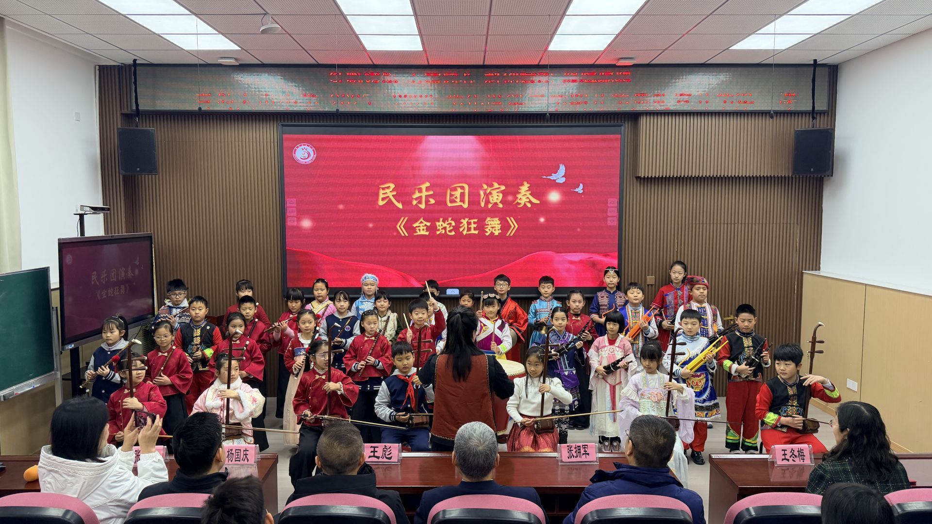 活动在民乐团演奏的激昂旋律中拉开序幕。本次开学典礼特邀市南区教育和体育局、青岛市红色文化研究会、海尔集团、青岛大学、金门路街道天山社区等单位的多位嘉宾莅临现场,与师生共赴成长之约。