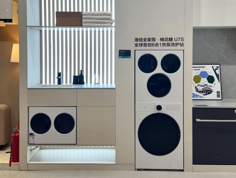 近年来,家电行业创新迭代持续加速,洗衣机领域多筒化浪潮全面兴起,消费者对分区洗护、健康高效、场景集成的需求不断升级。2026年3月5日,在“海信世界杯营销暨定制产品发布会”上,海信洗衣机正式推出2026款全新一代全家筒系列产品——海信全家筒・棉花糖U7S四筒洗衣机,以及线上专供款大薄荷E5S四筒洗衣机。作为全球首创6合1热泵洗护站,海信全家筒四筒新品首创集成在洗衣机里的洗鞋机,并跨越升级Ai宙斯热泵3.0技术,烘干效率提升32%,以“自由组合 衣鞋同净”的颠覆性设计,在0.5m³的空间内实现全家全身健康分区洗护,推动洗衣机从单一衣物清洁向“从上到下、从里到外、从头到脚”的全身分区健康洗护迈进。