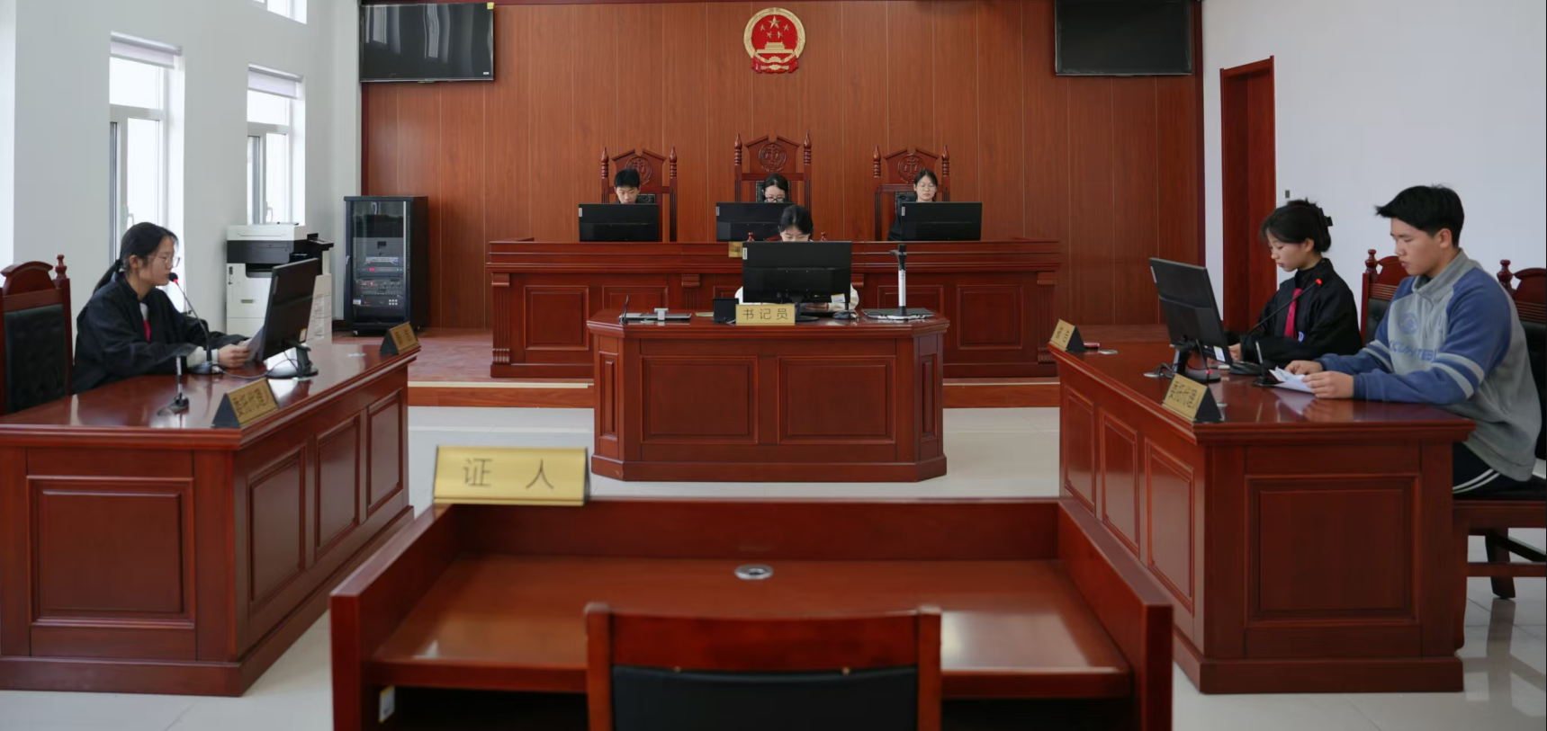 学生们沉浸式体验模拟法庭。