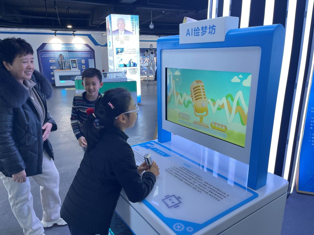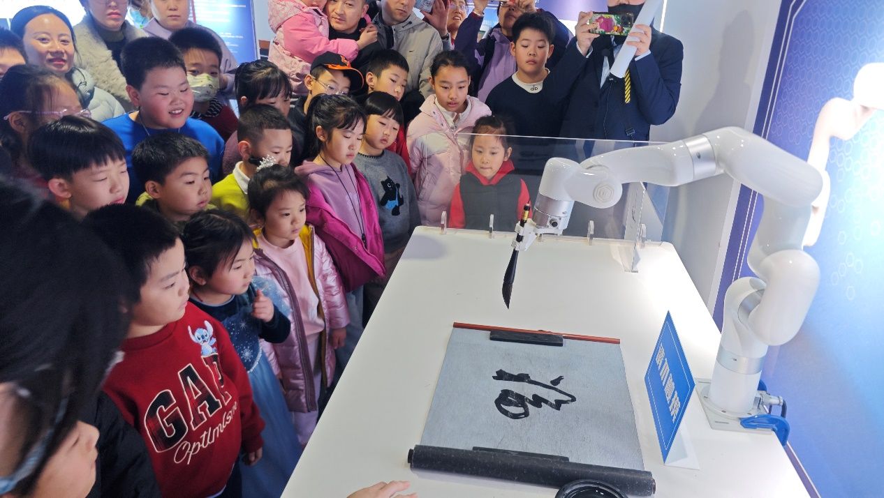 科技馆内的经典人工智能展品也依旧魅力不减。书法机器人宛如书法大师,在机械臂的精准操控下,蘸墨、运笔一气呵成,书写出的毛笔字刚劲有力、形神兼备,让小记者惊叹于科技与传统文化碰撞的火花;智能分拣展品凭借图形识别技术,能快速精准地将不同形状、颜色的物品分类,小记者亲手将物品放上传送带,观察机械臂的精准操作,了解这项技术在物流、工业生产中的实际应用;“模仿大师”展台前,小记者做出点头、挥手等动作,展品便能实时捕捉并精准复刻,让大家直观感受动作捕捉技术的神奇。