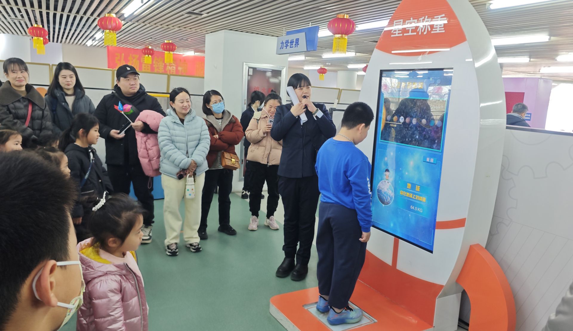 机器人跳舞表演更是经典打卡点,动感的音乐中,机器人灵活舒展肢体,完成一系列复杂舞蹈动作。除了人工智能展区的深度体验,馆内经典展区也早已成为大家探索科学的乐园。走进力学世界区域,滑轮组展台前始终人头攒动,小记者踊跃坐上椅子拉动绳索,亲身感受滑轮组改变力的方向、节省力气的物理特性,在动手操作中理解抽象的力学原理;星空称重设备前,大家排着队依次体验,看着显示屏上的数字变化,想象自己在不同星球上的重量,开启对宇宙奥秘的无限遐想。