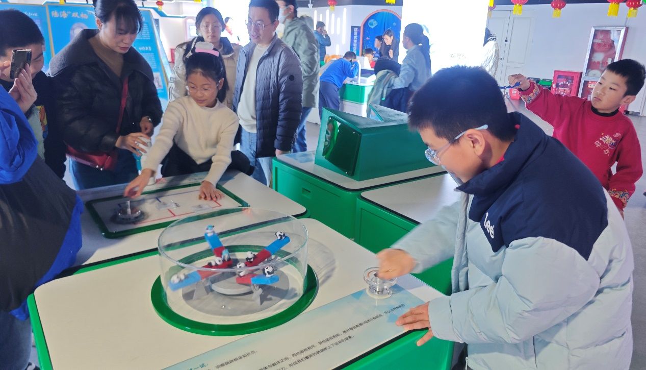 声光奇境与电磁探秘区域同样让小记者流连忘返,利用平面镜成像原理设计的趣味实验,让站在指定位置的体验者下半身“神奇消失”,引得小记者围聚讨论,不断变换角度观察,探寻视觉干扰的奥秘;各类电磁互动展品前,大家认真聆听讲解员讲解,观察电流、磁场带来的奇妙现象,在好奇与探索中走进声光电磁的科学世界。智慧生活、益智拼搭等区域的经典展品,也让小记者在互动中感受到科学与生活的紧密关联,体会到科技为生活带来的便捷。