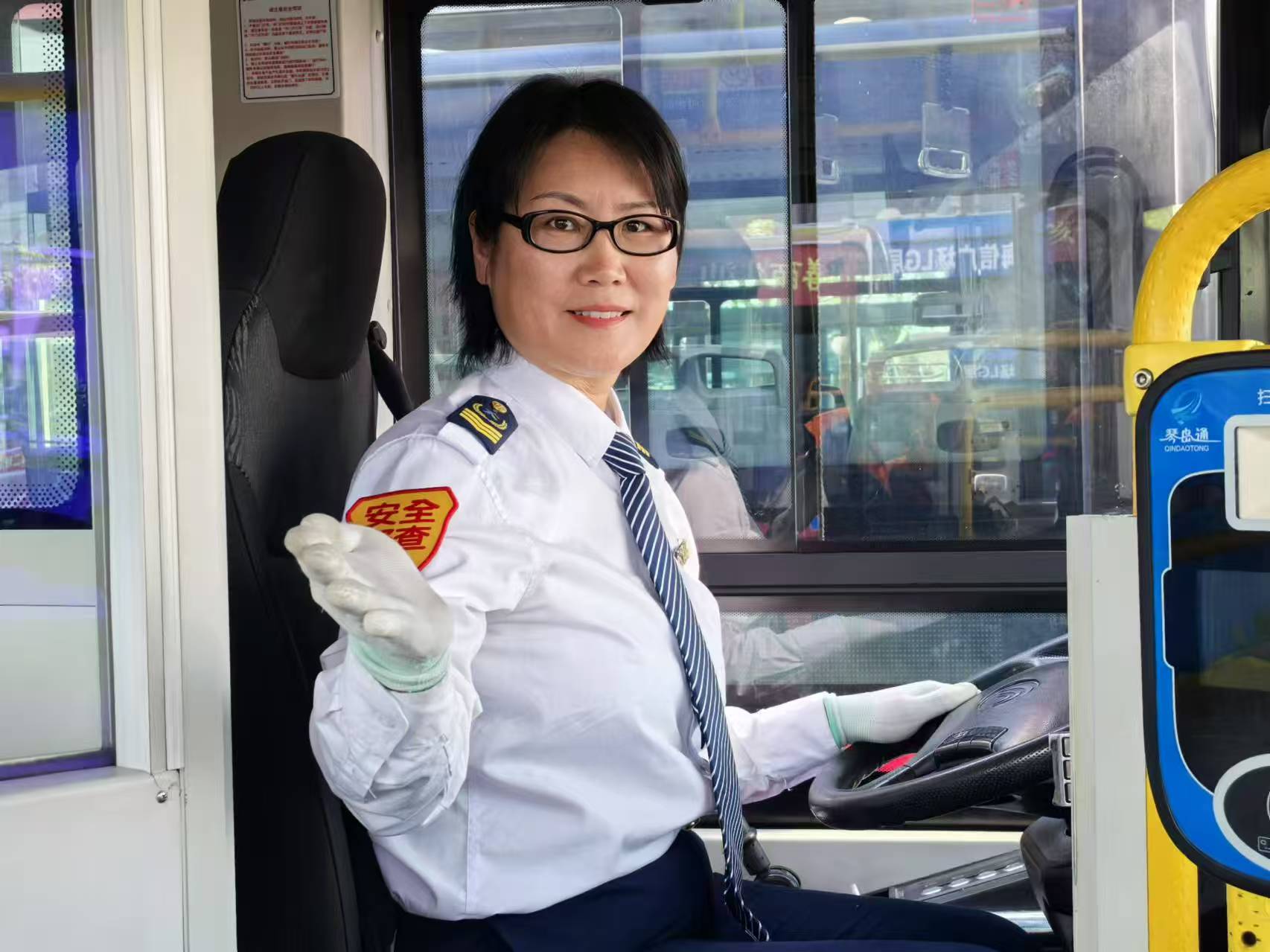 三八妇女节前夕,市南巴士406路驾驶员刘丽娜迎来了职业生涯中意义非凡的一天——她入职公交行业整整20年了。