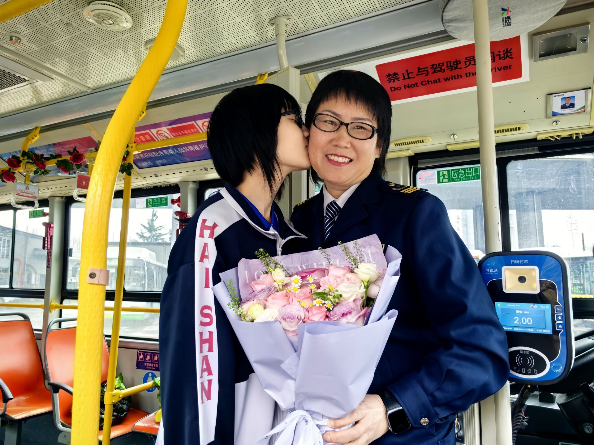 十六万公里的行程,二十年如一日的坚守。从18岁到38岁,刘丽娜把人生中最美好的年华都倾注在了这十米车厢之中。这个三八节,当鲜花与泪水交织,当孩子温暖的拥抱驱散疲惫,她更加坚定了自己的选择。她不仅用方向盘转动着城市的温度,更用创新的服务理念诠释着“诚载美好”的深刻内涵。