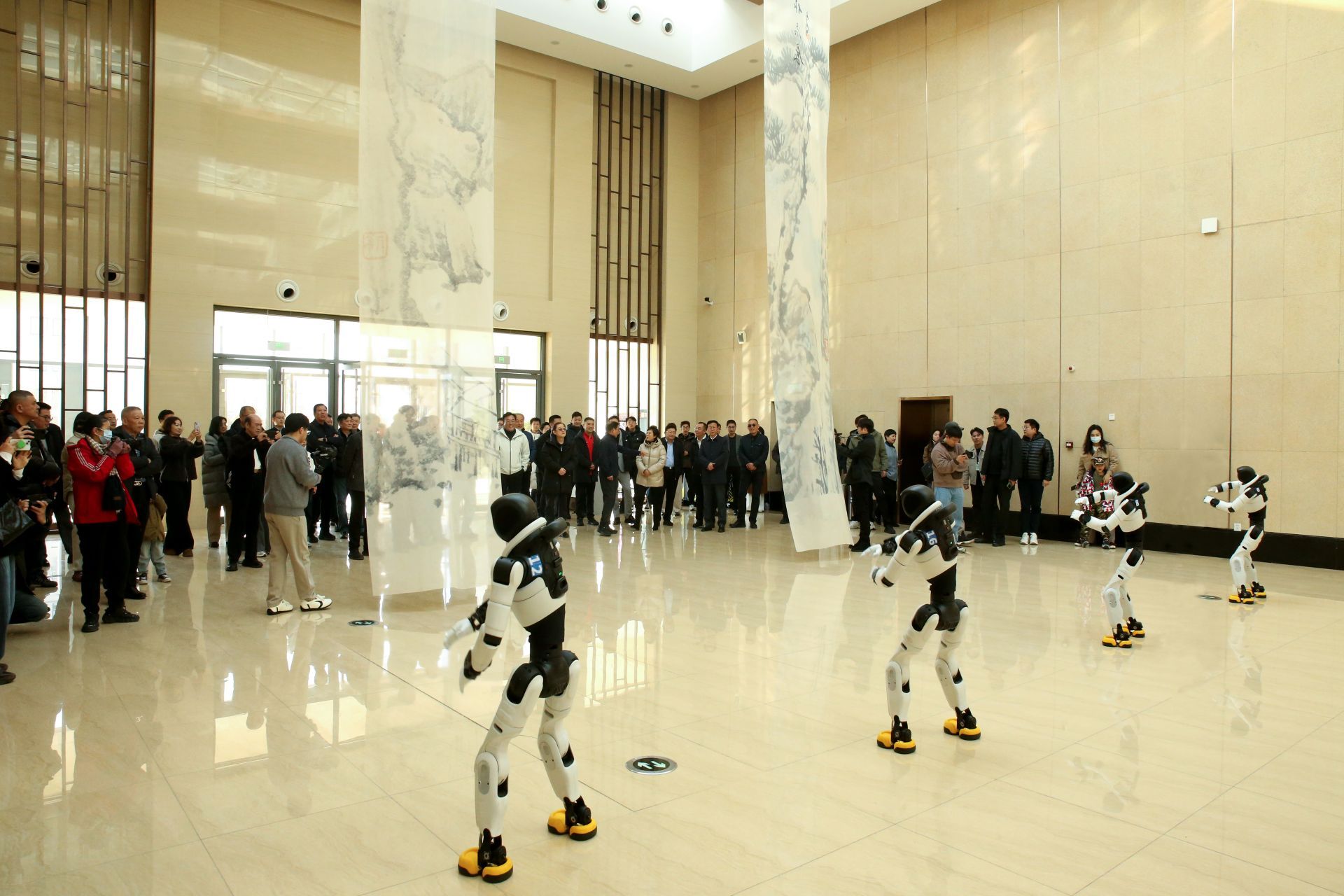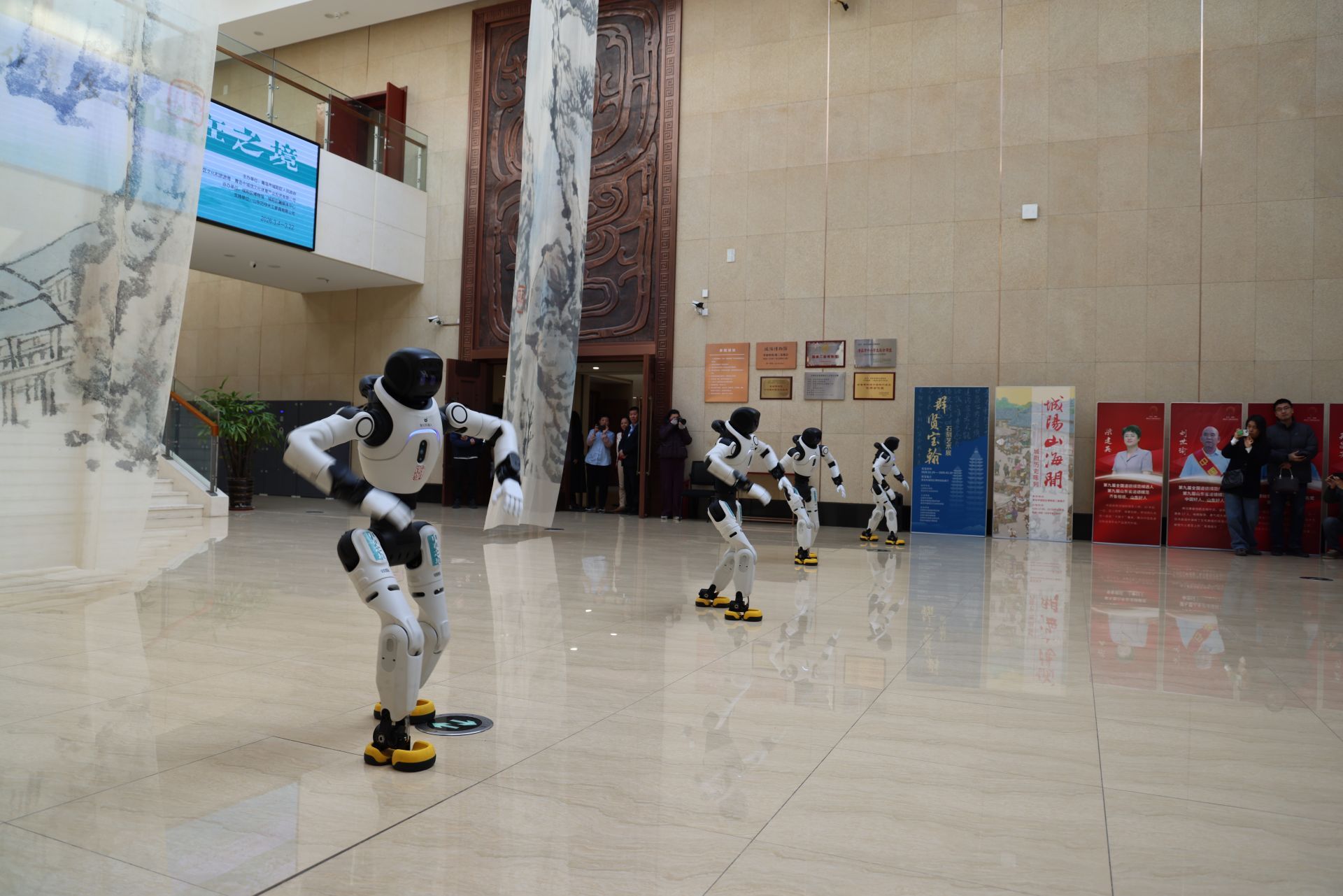 近日,“自在之境——王宇鹏作品展”集中观展活动在青岛市城阳区博物馆举行。本次展览一大创新亮点,便是在全国传统书画展中首次启用4台智能机器人担任迎宾,开创科技与传统文化艺术融合的新范式。