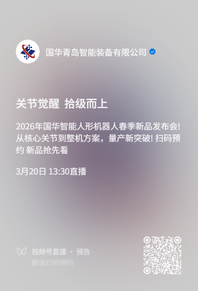 2026年3月,中国,青岛——在全球人形机器人产业加速迈向量产落地的关键阶段,国华(青岛)智能装备有限公司宣布,将于3月20日在青岛举办新品发布活动,集中展示其在人形机器人领域的全栈式自研与系统级能力。